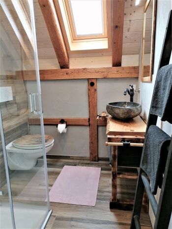 Einen Teil unserer Scheune haben wir mit viel Liebe zum Detail ausgebaut, dort ist eine weitere Wohneinheit für 2 Personen entstanden. Der Standard von heute kombiniert mit dem urigen Flair einer Scheune! Sie wohnen in der Scheune alleine, es ist quasi wie in einem Ferienhaus.