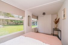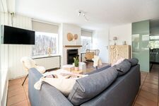 Im hellen, sehr geschmackvoll eingerichteten Wohnzimmer befindet sich eine komfortable Sitzecke und ein stimmungsvoller Kamin. Der Bungalow verfügt über gratis WLAN und SMART TV, wo Sie unter anderem NETFLIX (über Ihr eigenes Konto) und eine Vielzahl anderer Sender empfangen können. Im angrenzenden, großen Wintergarten befindet sich ein Essbereich für 6 Personen und eine Sitzecke. Hier können Sie während des Frühstücks die fantastische Aussicht auf die Natur genießen. Durch die Schiebewand betreten Sie die sonnige Terrasse mit einer Gartensitzgruppe für 6 Personen. Hier können Sie den Tag stilvoll am Grill ausklingen lassen!