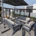 Auf der Terrasse läßt es sich gut entspannen in den bequemen Terrassenmöbeln mit einem Esstischset mit 4 Stühlen sowie einer großzügigen Loungegarnitur und 2 Sonnenliegen. Zur Abschattung stehen Ihnen 3 große Sonnenschirme zur Verfügung.