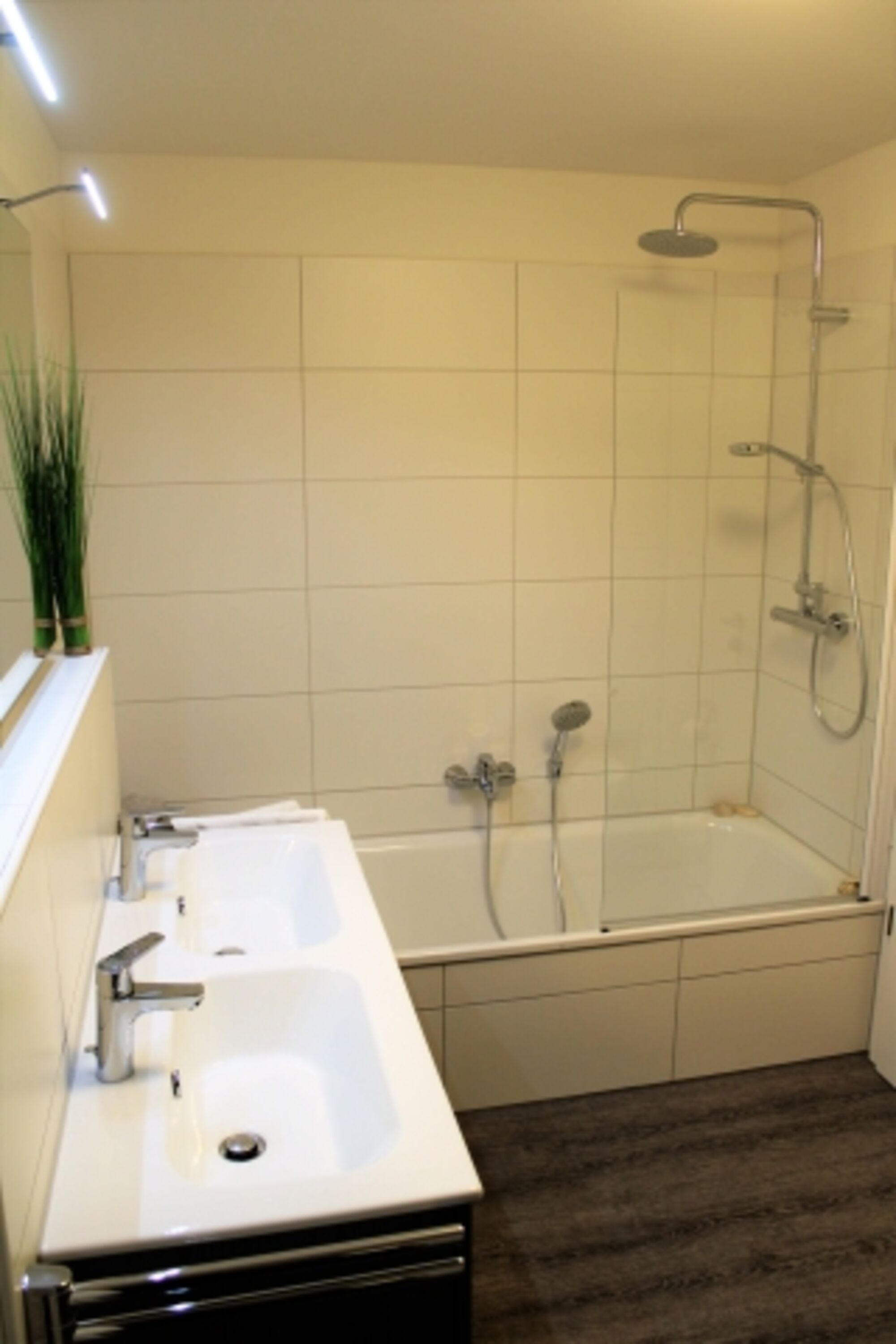 In der ersten Etage finden Sie neben zwei großzügigen Schlafräumen, ein großes Bad mit Doppelwaschbecken, zwei Duschen, einer Badewanne und einer hauseigenen Sauna. An stürmischen und/oder regnerischen Tagen wird das Badezimmer so mit seiner Vollausstattung zum Wellnesstempel.