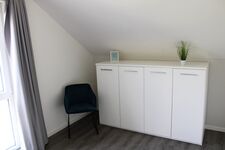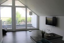 Die oberste Etage bietet nicht nur einen dritten Schlafraum, sondern auch eine Galerie mit einer weiteren gemütlichen Sofa- und Fernsehecke und einer traumhaften Loggia, von der aus man einen herrlichen Blick aufs Wattenmeer und die vorgelagerten Inseln genießen kann.
