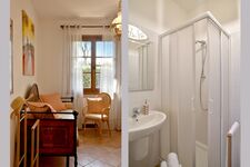 Schlafzimmer mit Doppelbett und Bad mit Dusche (ohne Fenster), Waschmaschine, Schlafzimmer mit 2 Schlafmöglichkeiten. (Einzelbett und Französisches Bett. Bad mit Wanne und Dusche (mit Fenster). Die Schlafzimmer haben Klimaanlage und an allen Fenstern sind Fliegengitter angebracht.