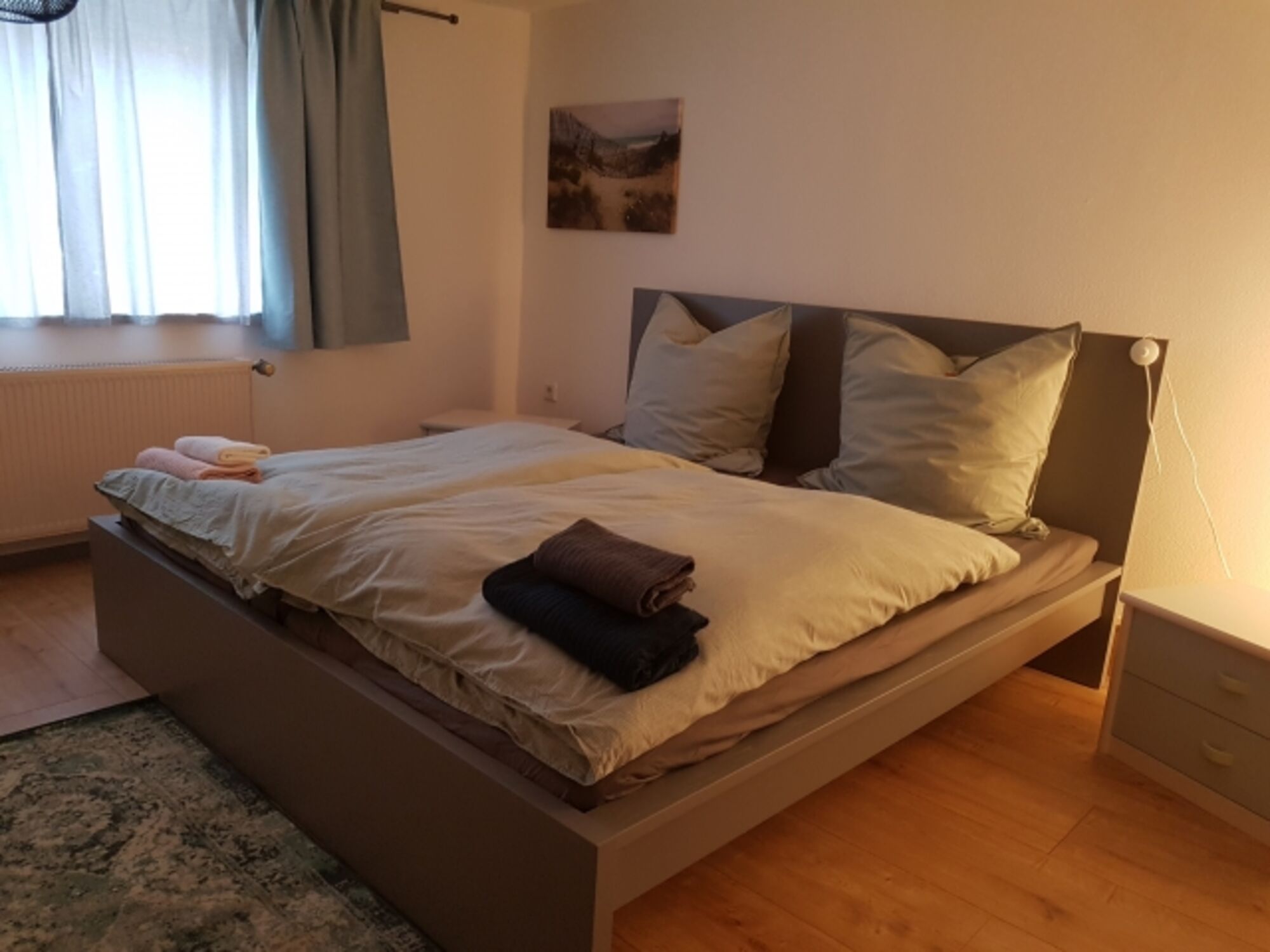 Doppelbett 1,80 x 2,00m, Spiegel, Leselampe am Bett