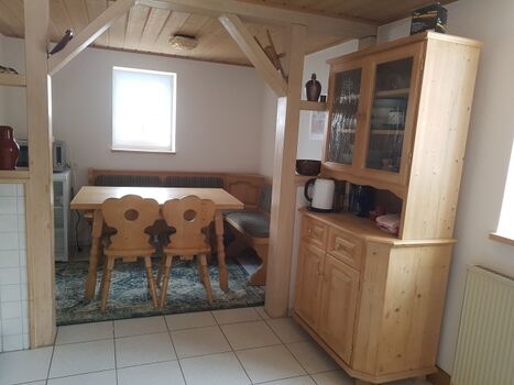 4-Platten Herd, Cerankochfeld, Mixer, Korkenzieher / Flaschenöffner, Gewürze (Salz, Pfeffer, Zucker), Öl / Essig, Geschirrhandtücher, Mülltüten, Essplatz in der Küche