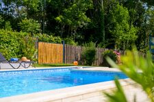 Ferienhaus mit Pool und umgeben von viel Grün