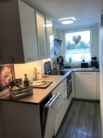 Cerankochfeld, Dunstabzugshaube, Kühlschrank mit Gefrierfach, Kaffeevollautomat, Korkenzieher / Flaschenöffner, Gewürze (Salz, Pfeffer, Zucker), Geschirrhandtücher, Mülltüten, Essplatz in der Küche