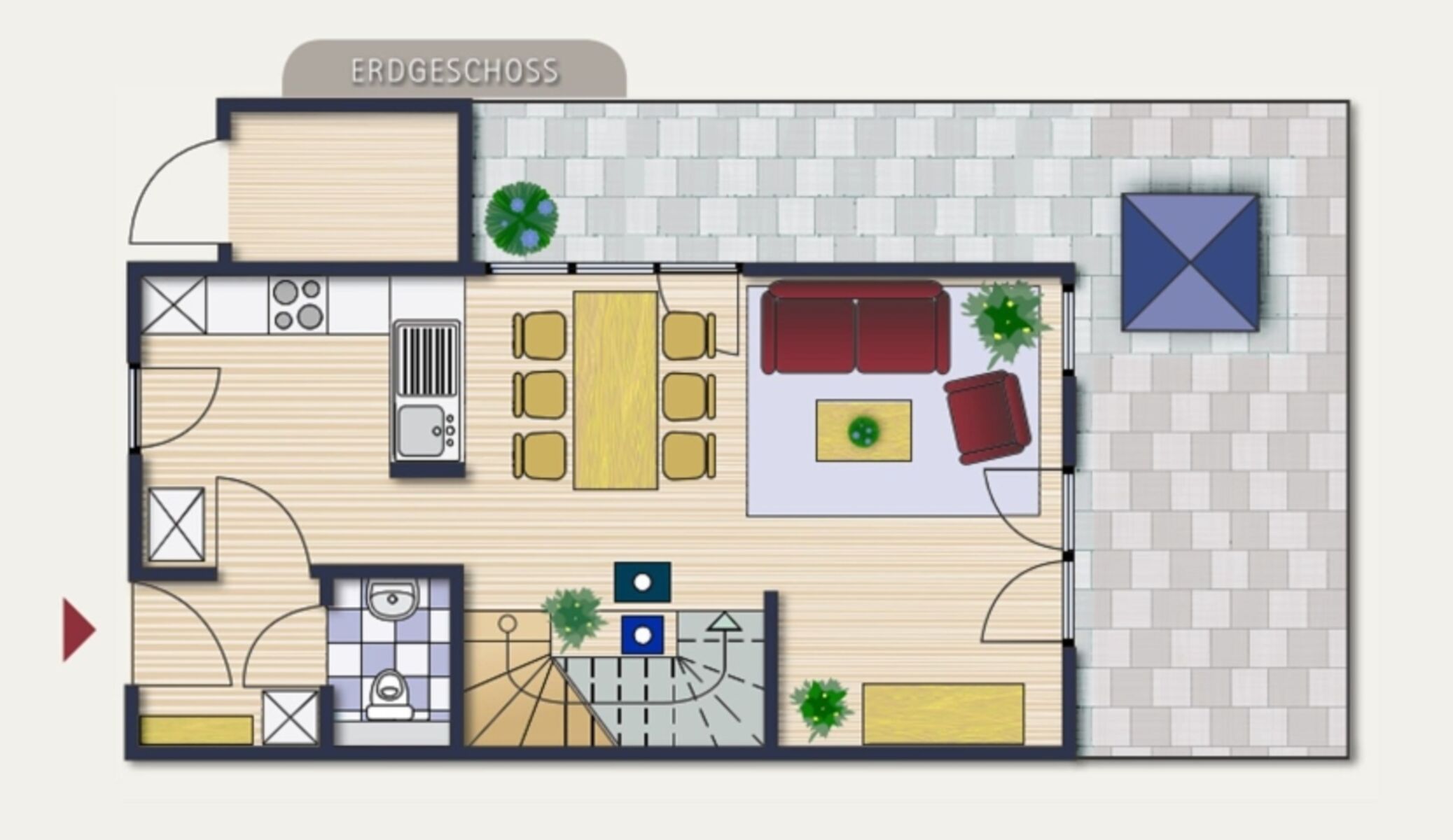 Ein Gäste-WC ist ebenfalls im Erdgeschoss vorhanden.