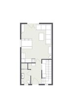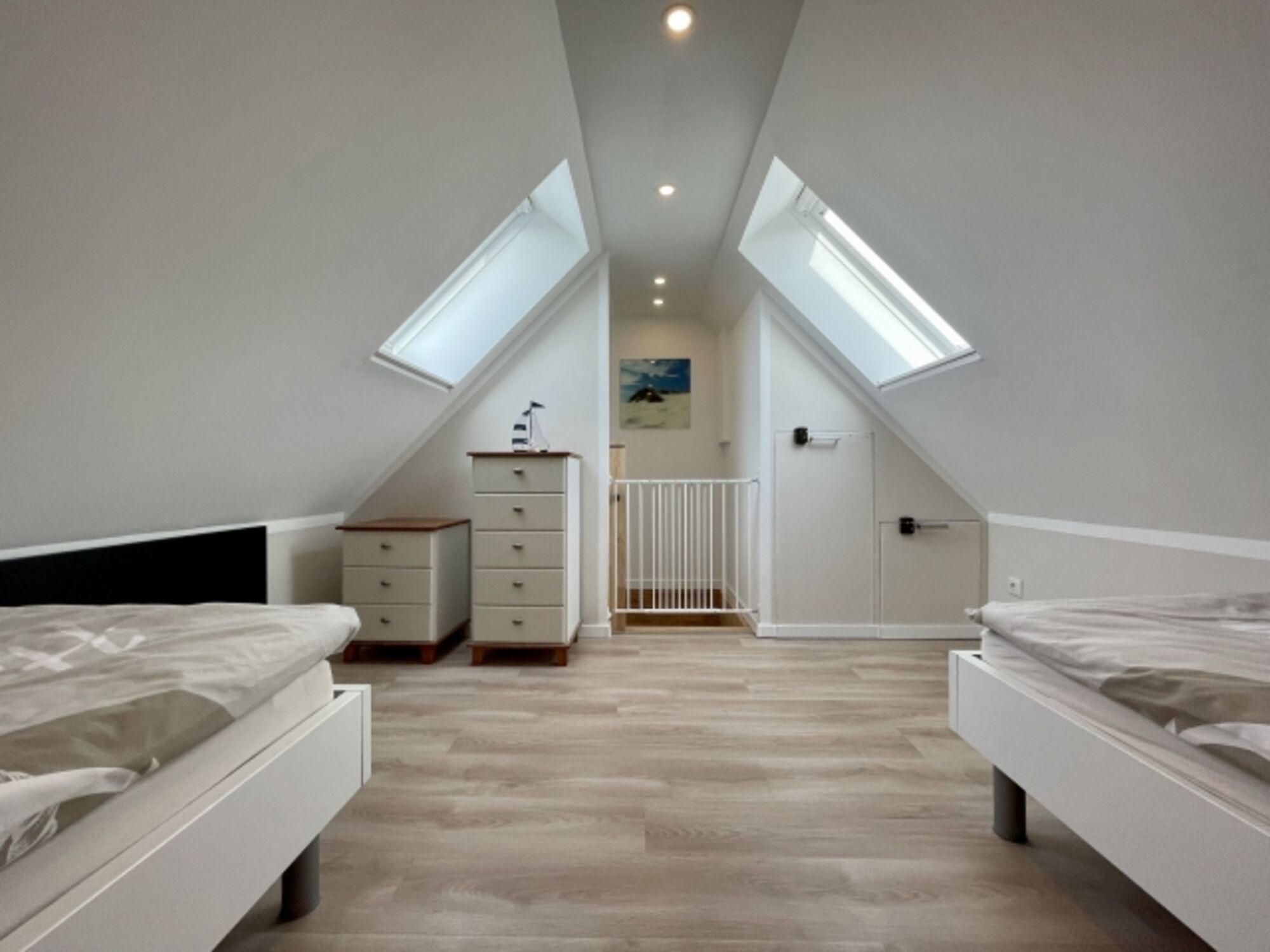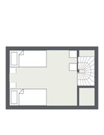 Ausgebautes Dachgeschoss. Der Raum eignet sich vor allem für Kinder und Jugendliche. Einzelbett, Kommode