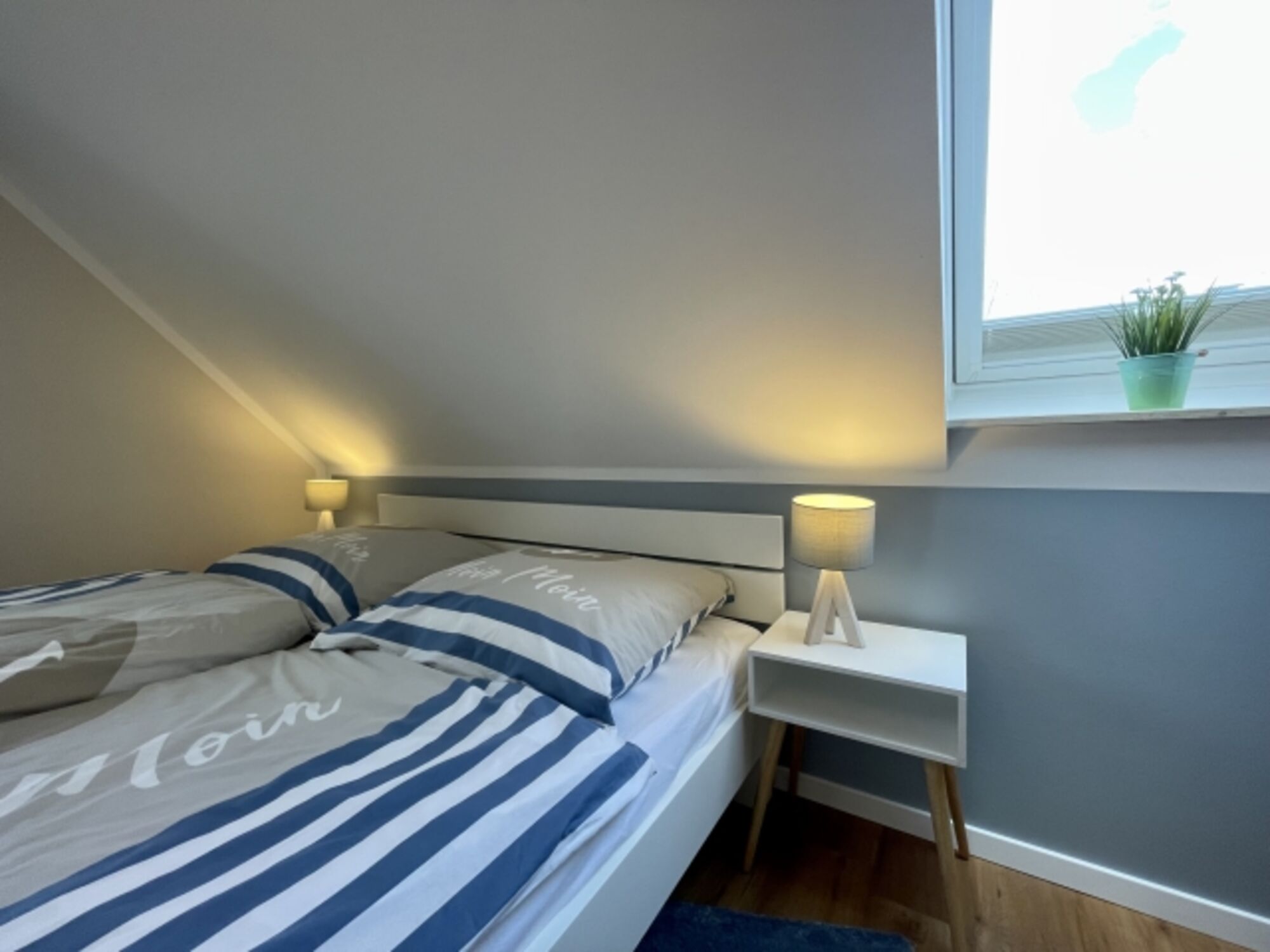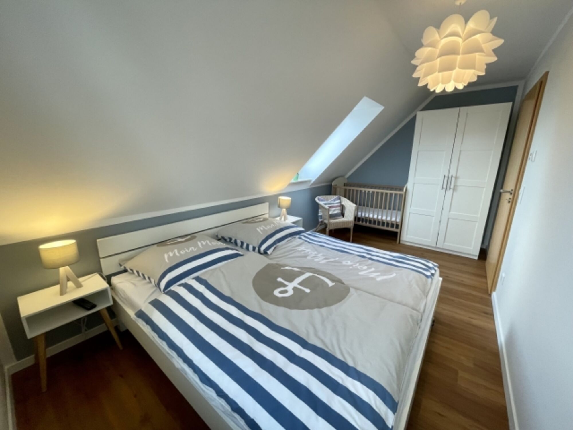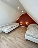 Weiter sind vorhanden: Im EG 1 Bad mit Dusche und WC, Abstellraum mit Waschmaschine, weiterem Kühlschrank, Bügelbrett und Bügeleisen. Im OG 2 Schlafzimmer, 1 Bad mit Badewanne und WC. . Ein Baby-/ Kleinkindbett und ein Kinderhochstuhl sind vorhanden. Im DG sind zwei Einzelbetten vorhanden. Der Raum eignet sich insbesondere für Kinder / Jugendliche. WLAN-Glasfaser ist vorhanden.