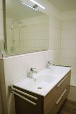 An stürmischen und/oder regnerischen Tagen kann das Badezimmer mit seiner Vollausstattung zum Wellnesstempel werden.
