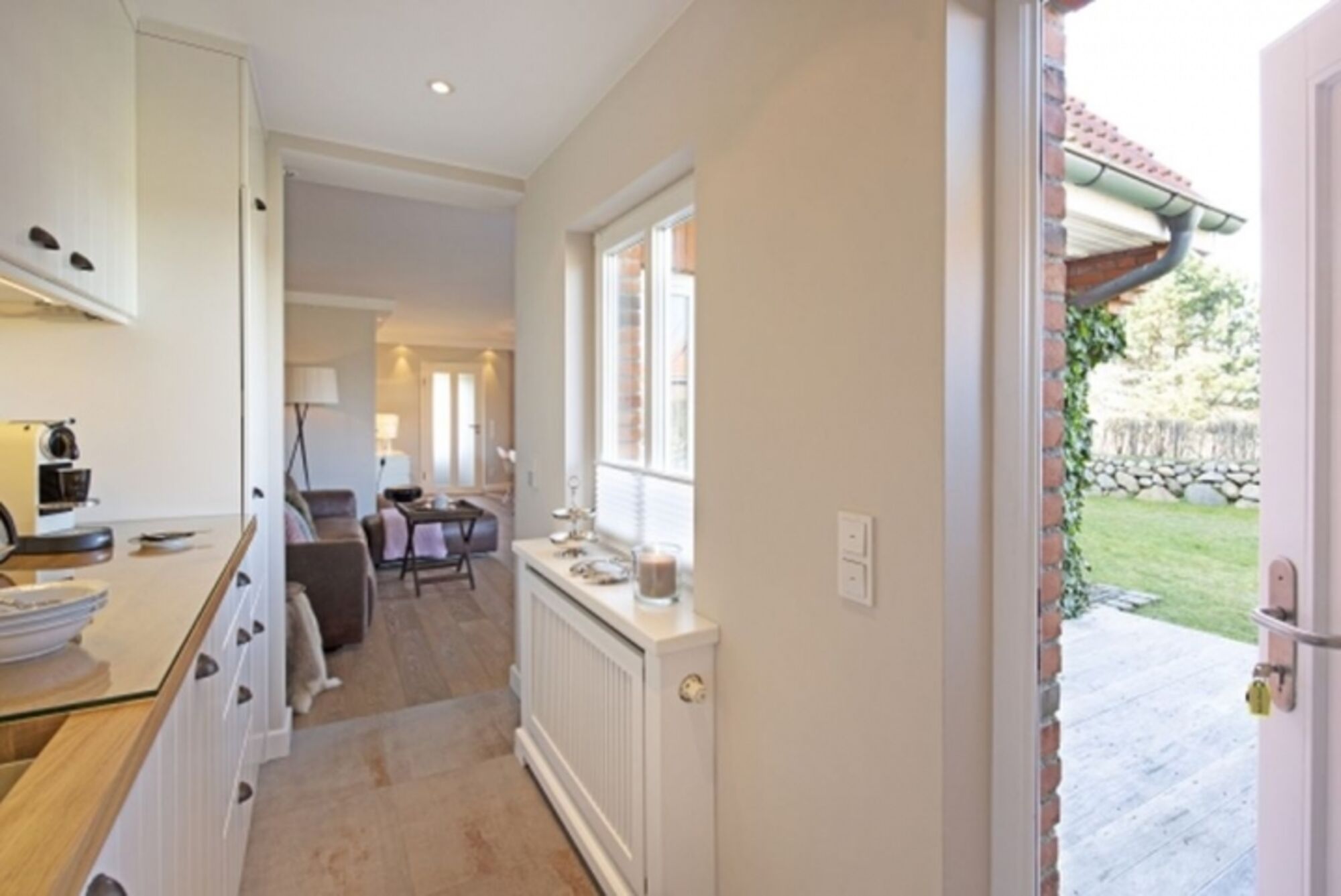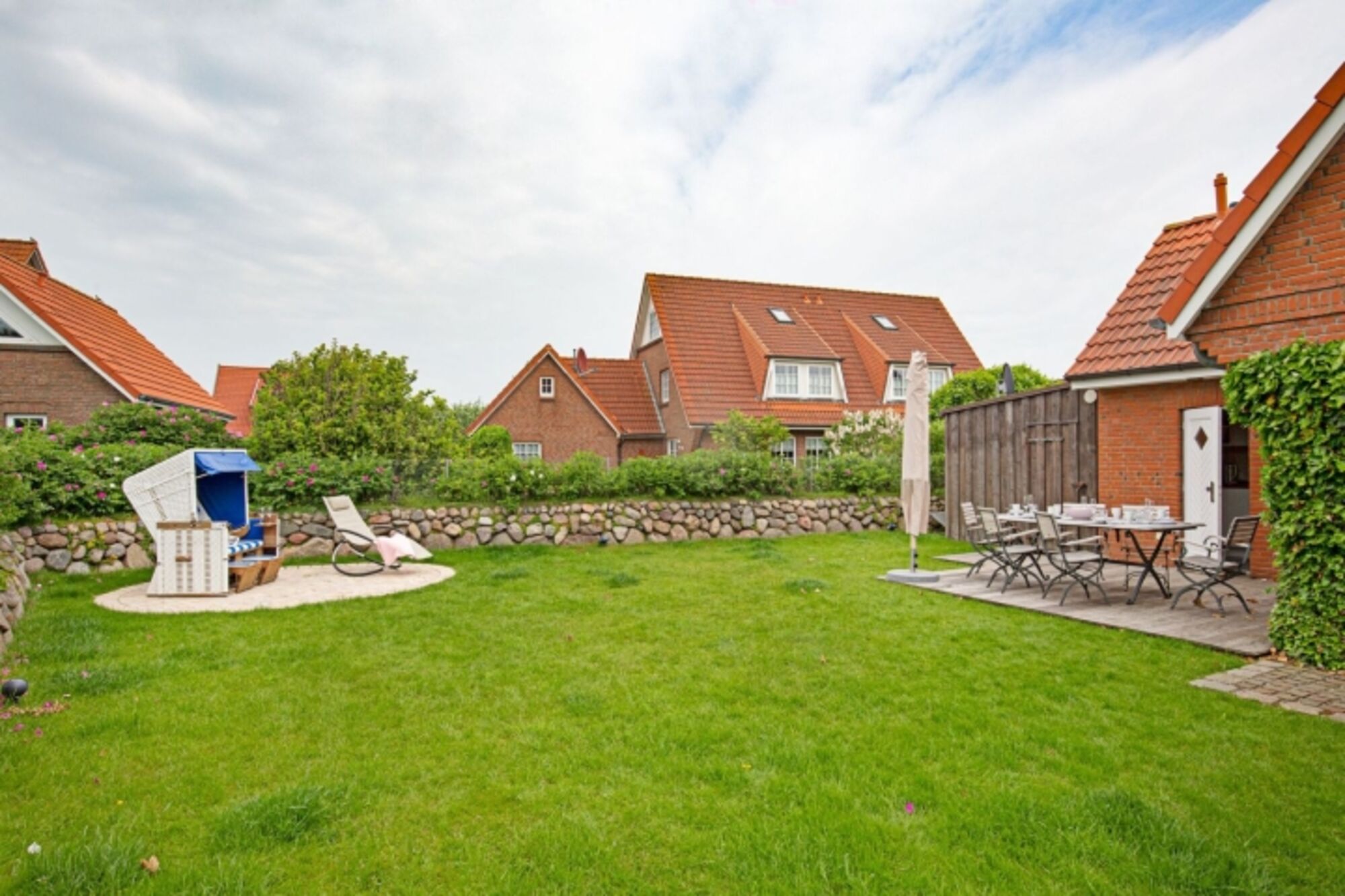 Modernes Ferienreihenhaus unter Reet mit Kamin und großem Garten