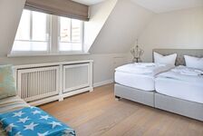 Genießen Sie die sonnige Terrasse in Ihrem Strandkorb, entspannen Sie in der (Infrarot-)Sauna oder der freistehenden Badewanne mit direktem Zugang zum Garten (EG) mit Blick auf die Syltrosen. Im 1. Stock befinden sich zwei Schlafzimmer (eins mit Schreibtisch) und ein Bad. Im Dachgeschoss (stark ansteigende Treppe) befindet sich ein weiteres Arbeitszimmer und einem Bad.