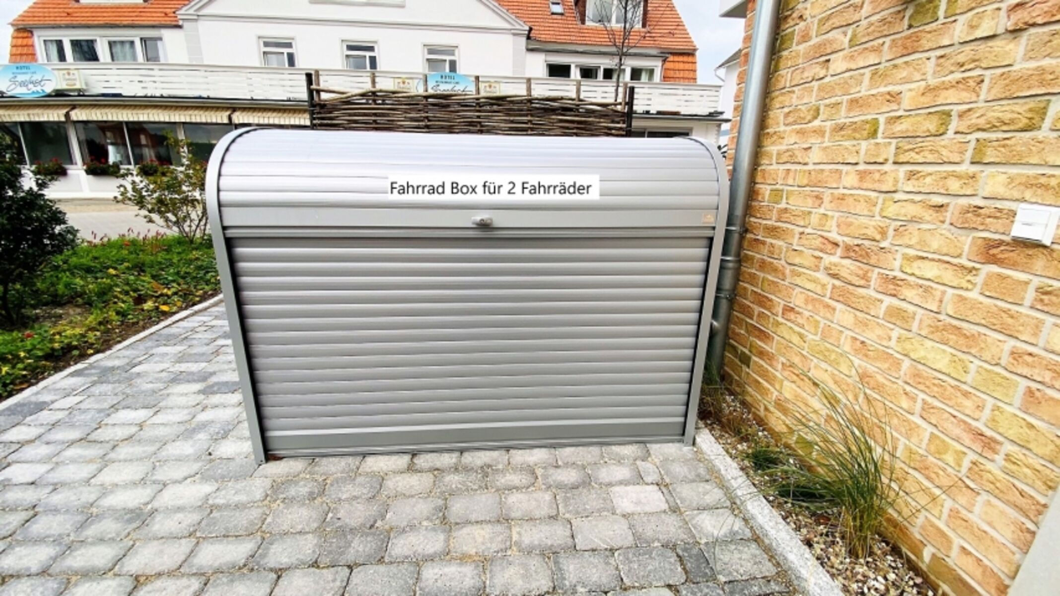 • Abschließbare, wetterfeste Rolladenbox für Fahrräder, Bollerwagen & Kinderwagen