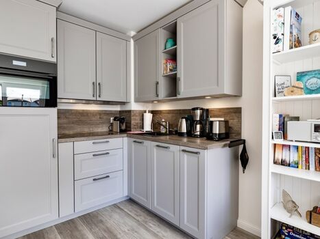 • Voll ausgestattete Einbauküche mit Backofen, Mikrowelle, Geschirrspüler