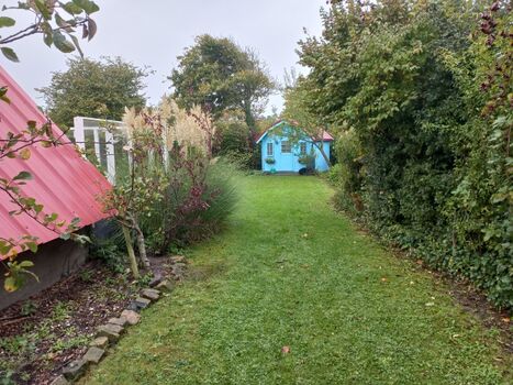 Liegewiese, Gartenmöbel, Kohlegrill, Windschutz