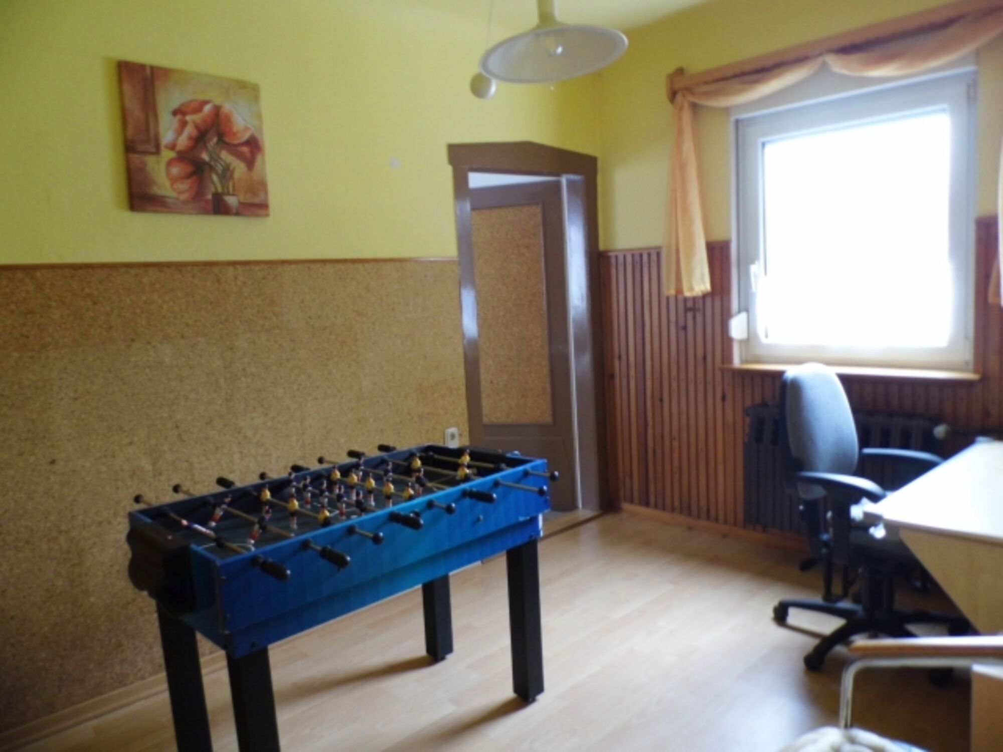 Anschließend Ankleidezimmer mit Schreibtisch, Größe ca. 10 qm Spieletisch mit Billard, Fussball, Shuffleboard, Schach, Backgammon Doppelbett 1,60 x 2,00m, Boxspringbett, Kommode, Spiegel, Fliegengitter