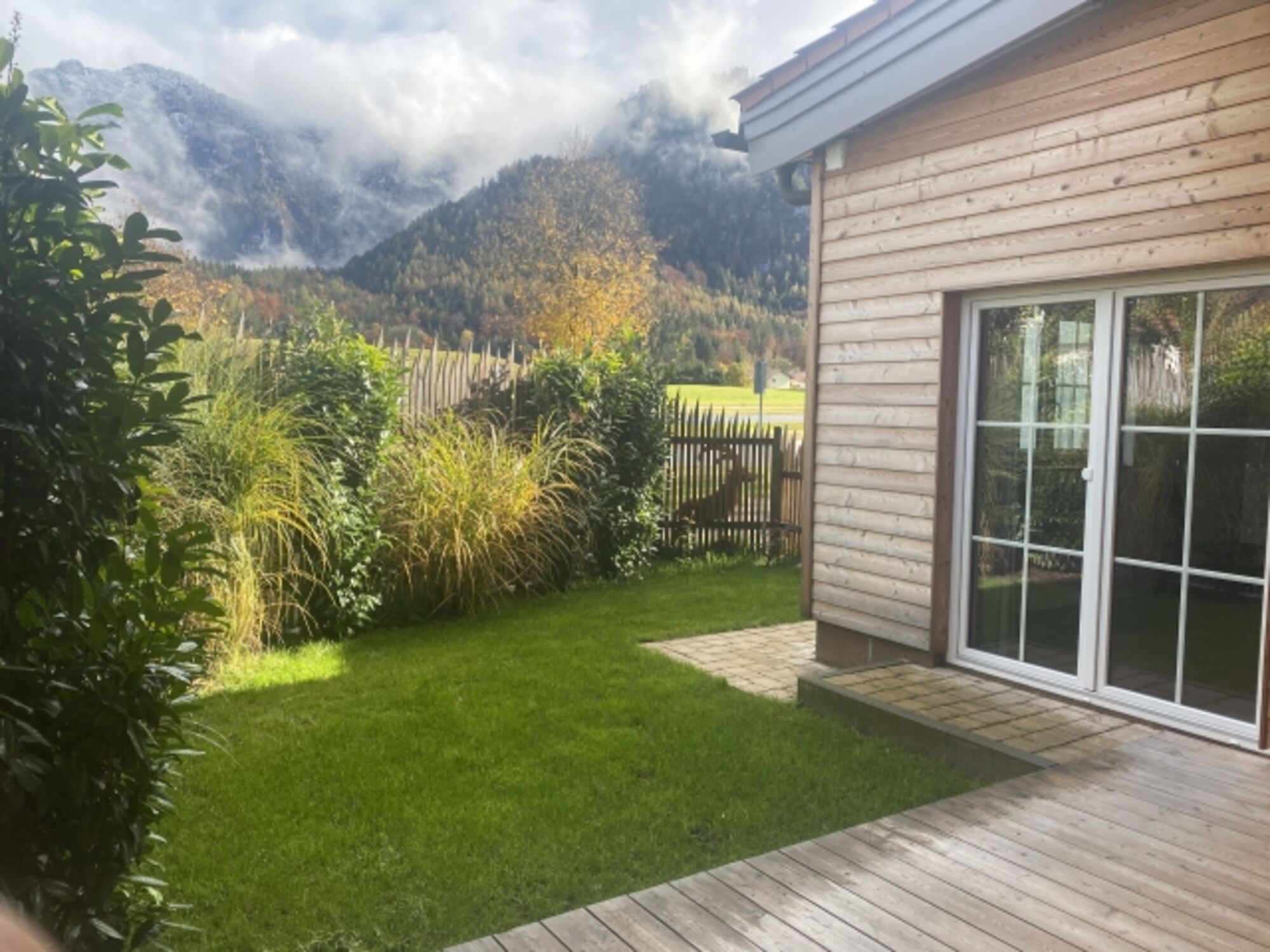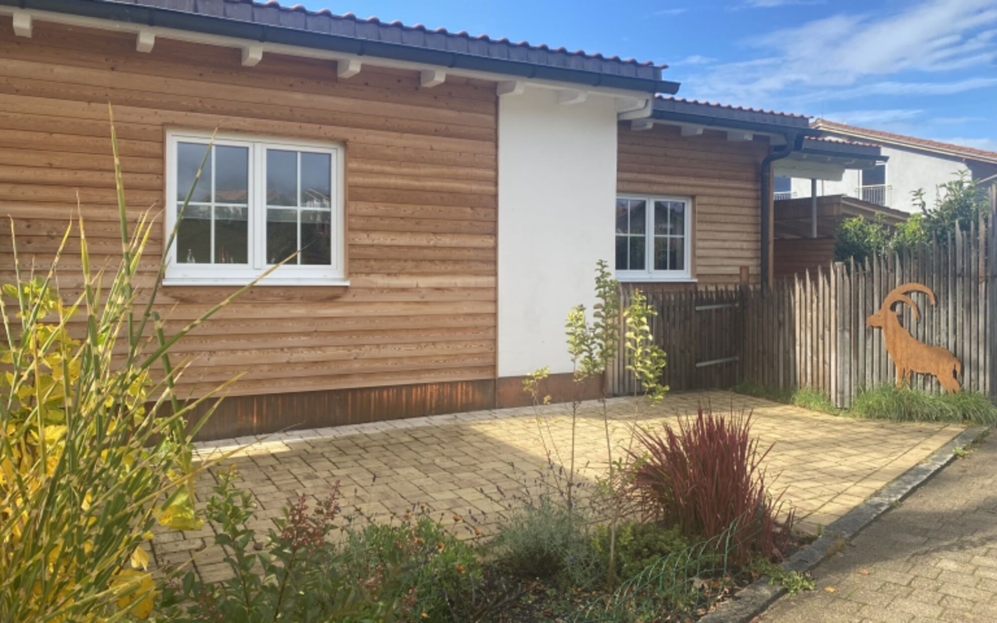 Der Garten mit überdachter Holzterrasse lädt zum Grillen und Relaxen ein und ist sowohl über eine doppelflügelige Terrassentüre als auch über die Haustüre begehbar. Was auch für Ihre Hunde viel Freiraum bringt.