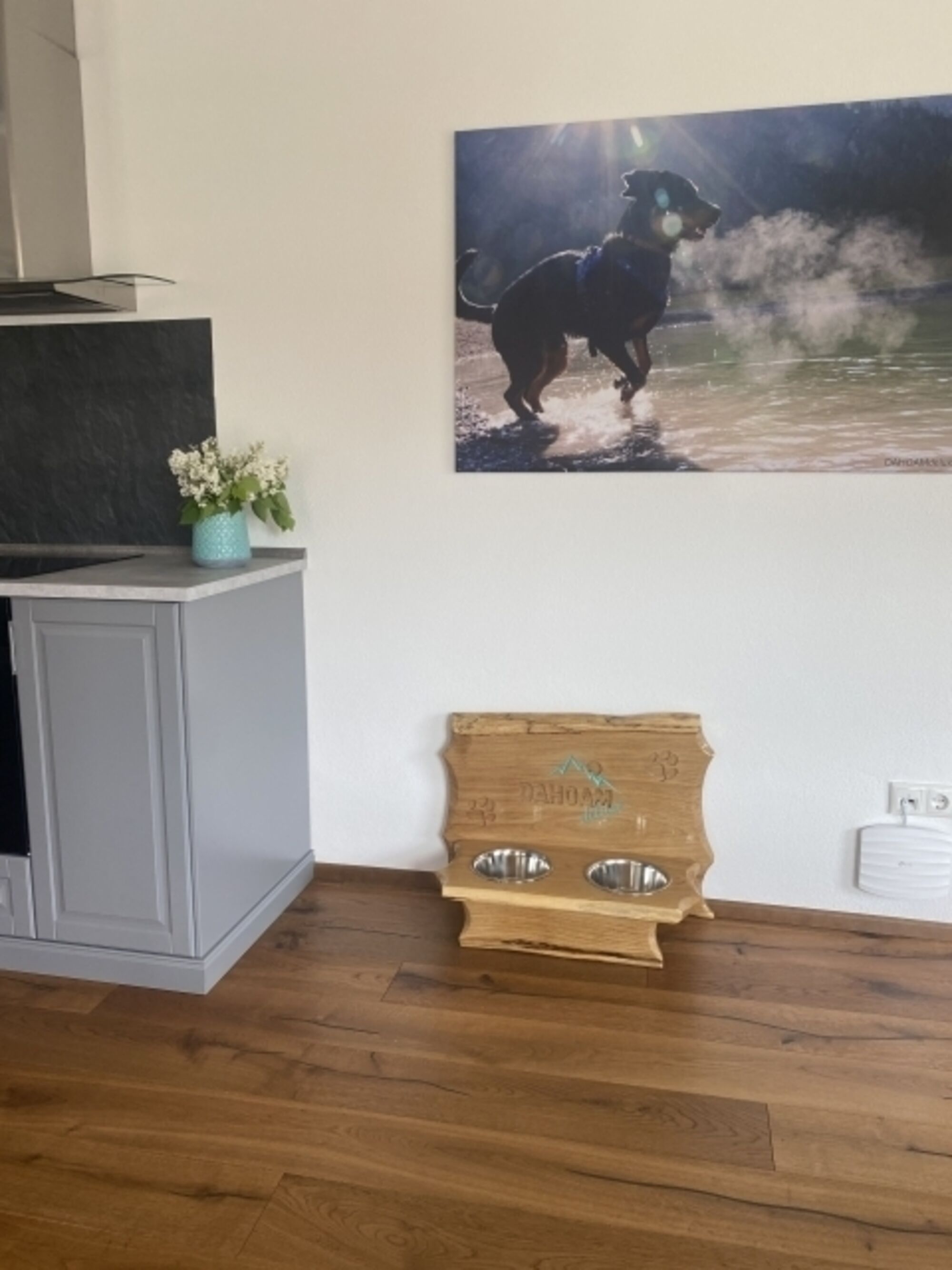 Wir sind vom DTV mit 5 Pfoten klassifiziert, d.h. unser Haus ist perfekt dafür ausgelegt, dass Sie einen traumhaften Urlaub mit Ihren Vierbeinern verbringen. Von hochwertigen Hundebetten, über die Hundebar und die Leinengarderobe mit Hundehandtüchern bis hin zum frei zugänglichen Garten, der Hundesicher eingezäunt ist, haben wir mit viel Liebe und Hundeverstand das Ferienhaus für Sie eingerichtet. Sie können bei uns Ihren Hundesitter und Therapie buchen. Die Eigentümerin ist Pferdetrainerin, Tierheilpraktikerin und Tierosteopathin und hat sehr viel Hundeerfahrung.