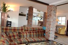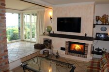 TV, TV-Sat, TV-Flachbildschirm, HDTV Flachbildschirm, Hi-Fi-Anlage mit Bluetooth, CD-Player, CD´s, Bücher, Offener Kamin, Kaminofen, Eckcouch, 3er-Sofa, Sessel