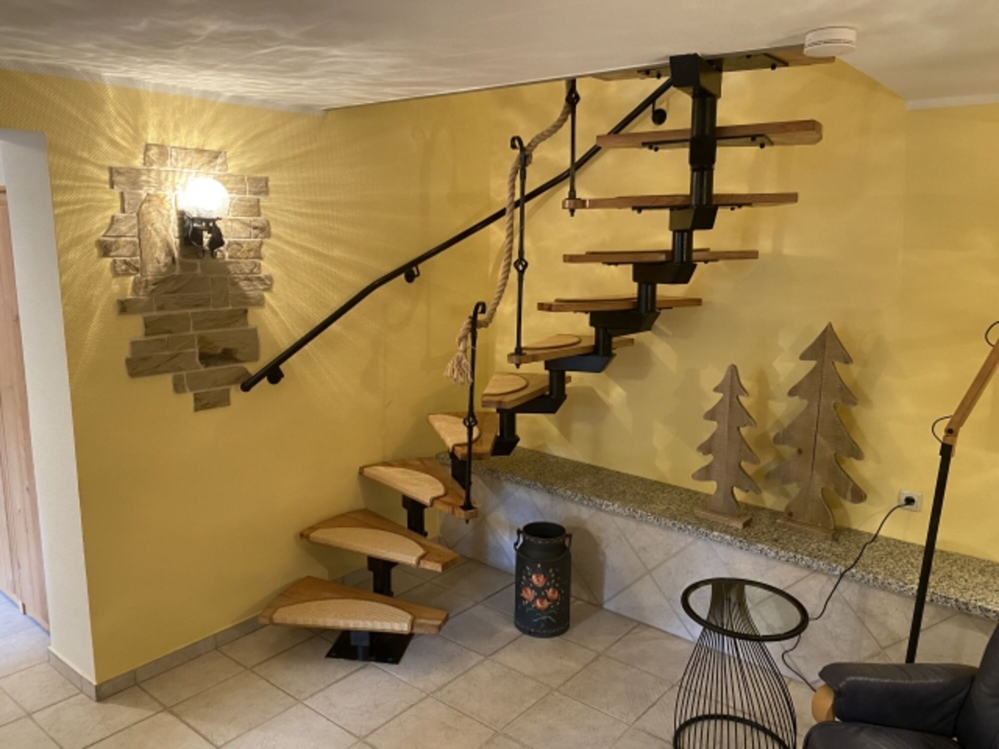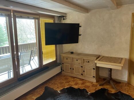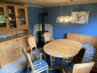 Im Winter kann der Schnee auch schon einmal bis in die Fenster des Erdgeschosses ragen. Das dort befindliche Esszimmer bietet durch die Kombination von einem Kaminofen und den Echtholzmöbeln aber gerade deshalb eine ganz besondere, gemütliche Atmosphäre. Genießen sie seinen Charme zu den Mahlzeiten oder einem Spieleabend. Eine kleine Auswahl an Weinen steht bei Ankunft für sie bereit, sie können diese bei Bedarf erwerben.