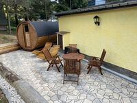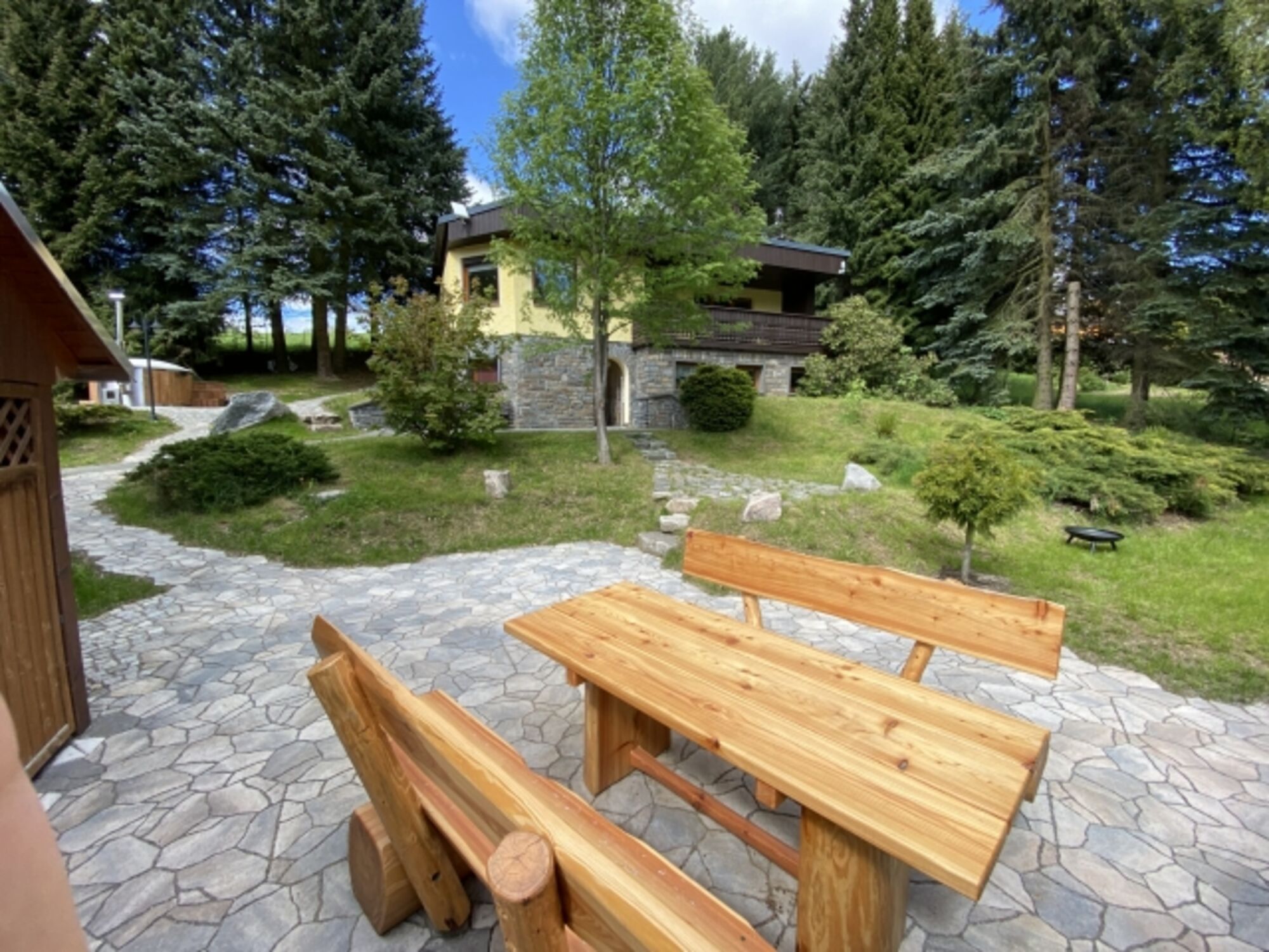 Das ca. 120m² große Mummelhaus befindet sich am Ortsrand der Gemeinde Sehmatal-Neudorf in herrlich ruhiger Lage, ist aber dennoch nicht weit vom Ortskern entfernt. Das umfriedete ca. 1000 m² große Grundstück steht ihnen zur alleinigen Nutzung zur Verfügung. Der alte Baumbestand und die Entfernung zur nächsten Bebauung vermitteln ihnen dieses Gefühl der Natur nahe zu sein. Durch die leichte Hanglage des Grundstückes können sie den Wellnessbereich mit Fasssauna, Außendusche und Relaxbereich hinter ihrem Ferienhaus ungestört und blickgeschützt genießen. Sommer wie Winter ist auch der Außen-Whirlpool eine Attraktion. Beide, Sauna und Hot Tub, werden mit Holz befeuert, welches wir ihnen bereitstellen. Ein rustikal gemütlicher Grillplatz sowie eine Garage und max. 2 Stellplätze runden die Außenanlagen ab.