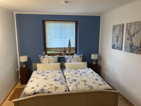 Doppelbett 1,60 x 2,00m, Kommode, Spiegel, Leselampe am Bett, Fliegengitter