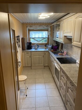 4-Platten Herd, Cerankochfeld, Dunstabzugshaube, Kühlschrank mit Gefrierfach, Küchenmaschine, Mixer, Elekt. Fruchtpresse, Korkenzieher / Flaschenöffner, Gewürze (Salz, Pfeffer, Zucker), Geschirrhandtücher, Mülltüten