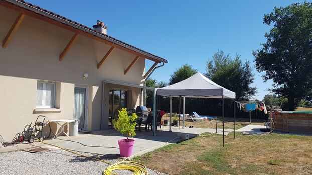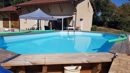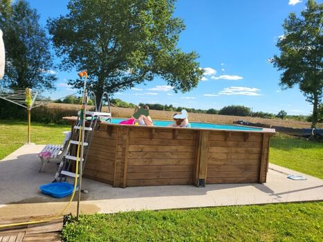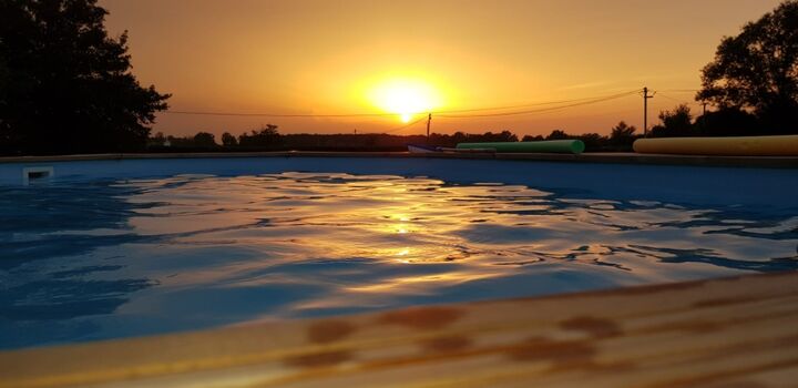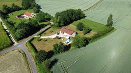 Das Haus ist sehr ruhig gelegen mit 7100 m2 Grundstück mitten in der Natur mit Weitsicht über Felder. Das Haus hat einen grossen Pool