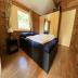 Der Bungalow zeichnet sich durch eine Kücheneinheit aus, die mit allen notwendigen Geräten wie Geschirrspüler, Mikrowelle, Wasserkocher und Kaffeemaschine ausgestattet ist. Die Küche öffnet sich zu einem geräumigen Wohnbereich mit gemütlichen Sitzgelegenheiten und einem Fernseher, ideal für entspannte Abende.