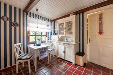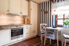 Ein Wohntraum unter'm Reetdach - einfach nur WOW! Anders lässt sich diese tolle, im Frühjahr 2021 vollständig renovierte Reetdachkate nicht beschreiben. Sie und Ihre(n) Hund(e) erwarten hier 150m² ebenerdige Wohnfläche sowie ein 1000m² großes, komplett eingezäuntes und nahezu uneinsehbares Grundstück. Der große Wohnraum mit gemütlichem Sofa, tollem Kaminofen, separatem Esstisch und Alkovenbett (als möglicher Schlafplatz für eine 5te Person) bietet mit dem großen Panoramafenster einen unglaublichen Blick in den wunderbaren, liebevoll angelegten Garten. Die Küche ist komplett ausgestattet, sehr hochwertig eingerichtet und ebenfalls mit einem Essplatz für 2-3 Personen versehen. Zwei Schlafzimmer, jeweils mit Doppelbett, bieten Platz für 4 Erwachsene. Das Highlight des Hauses bildet der neu ausgebaute Wellnessbereich mit Sauna, Dusche und Relaxliegen. So lässt sich das Haus zu jeder Jahreszeit genießen!