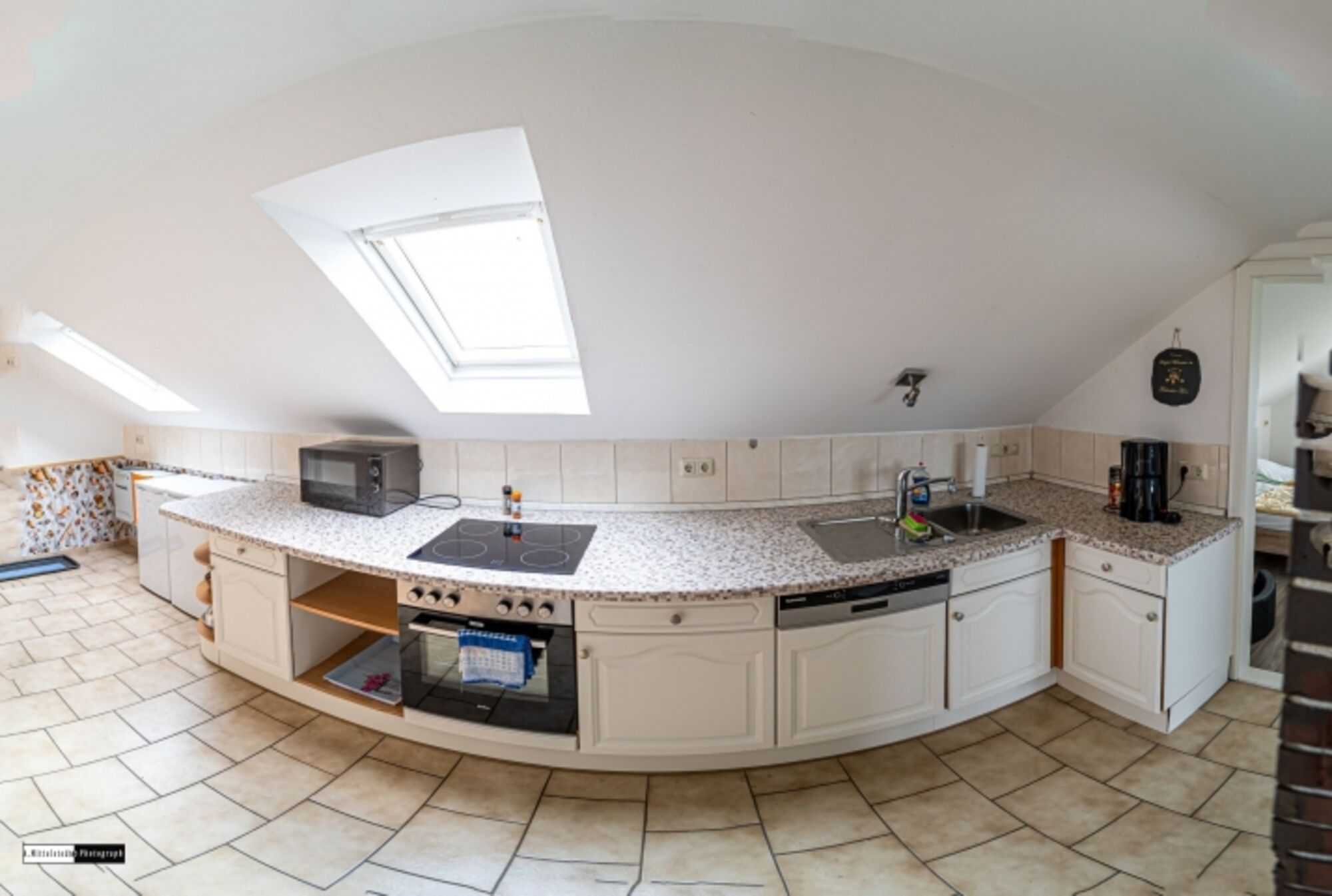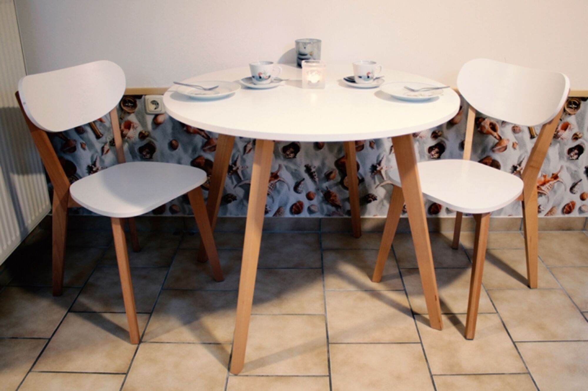 4-Platten Herd, Cerankochfeld, Gefrierschrank, Eierkocher, Korkenzieher / Flaschenöffner, Gewürze (Salz, Pfeffer, Zucker), Geschirrhandtücher, Mülltüten, Essplatz in der Küche