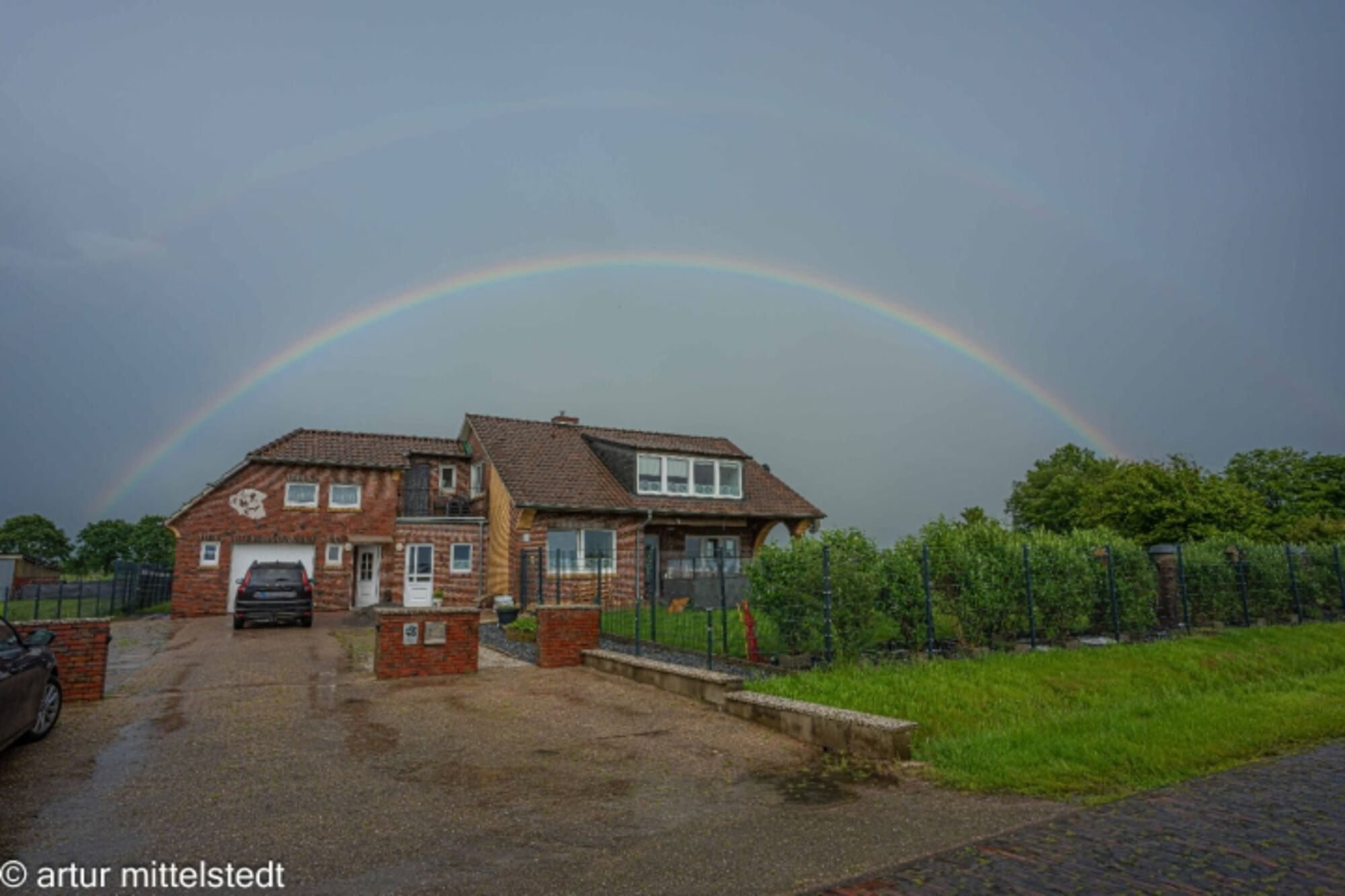Unsere Ferienwohnung befindet sich umgeben von Feldern & Wiesen im ersten Stock mit separatem Eingang.