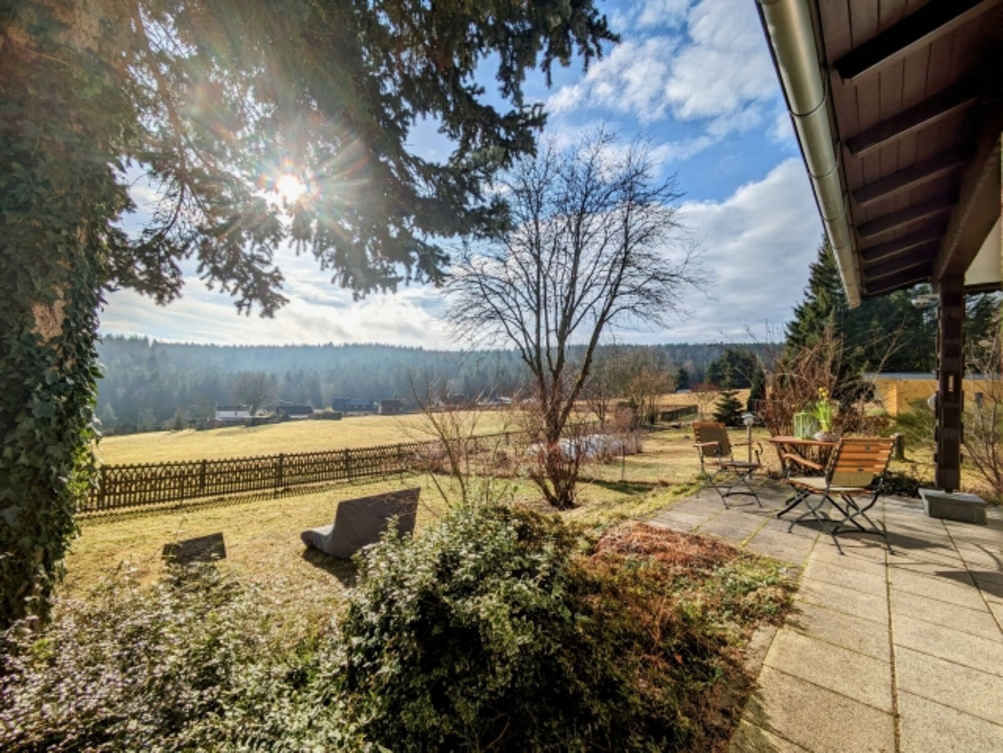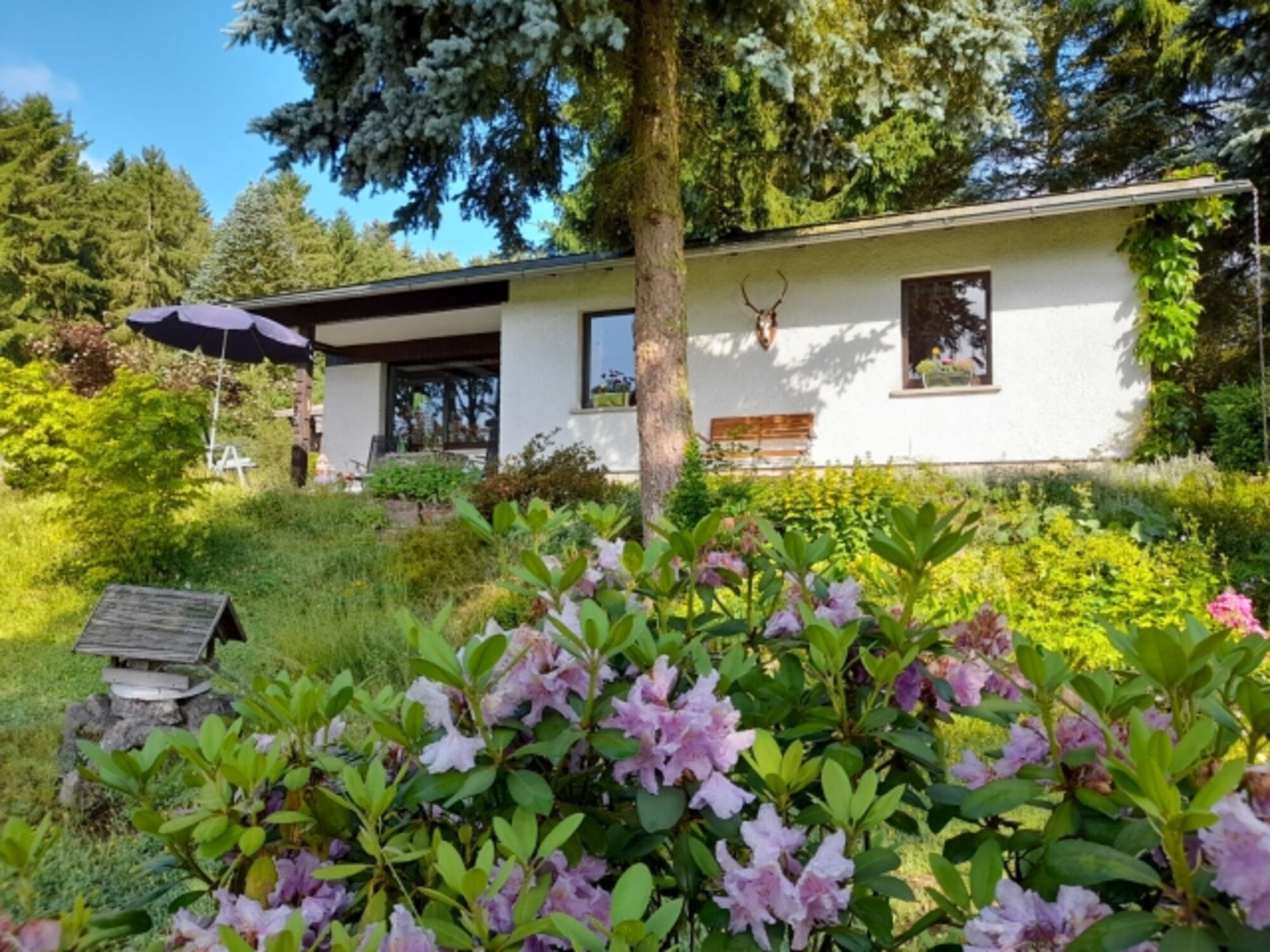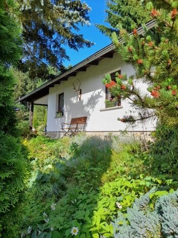 Häuschen im Grünen mit eingezäunten Garten idyllisch gelegen am Wald