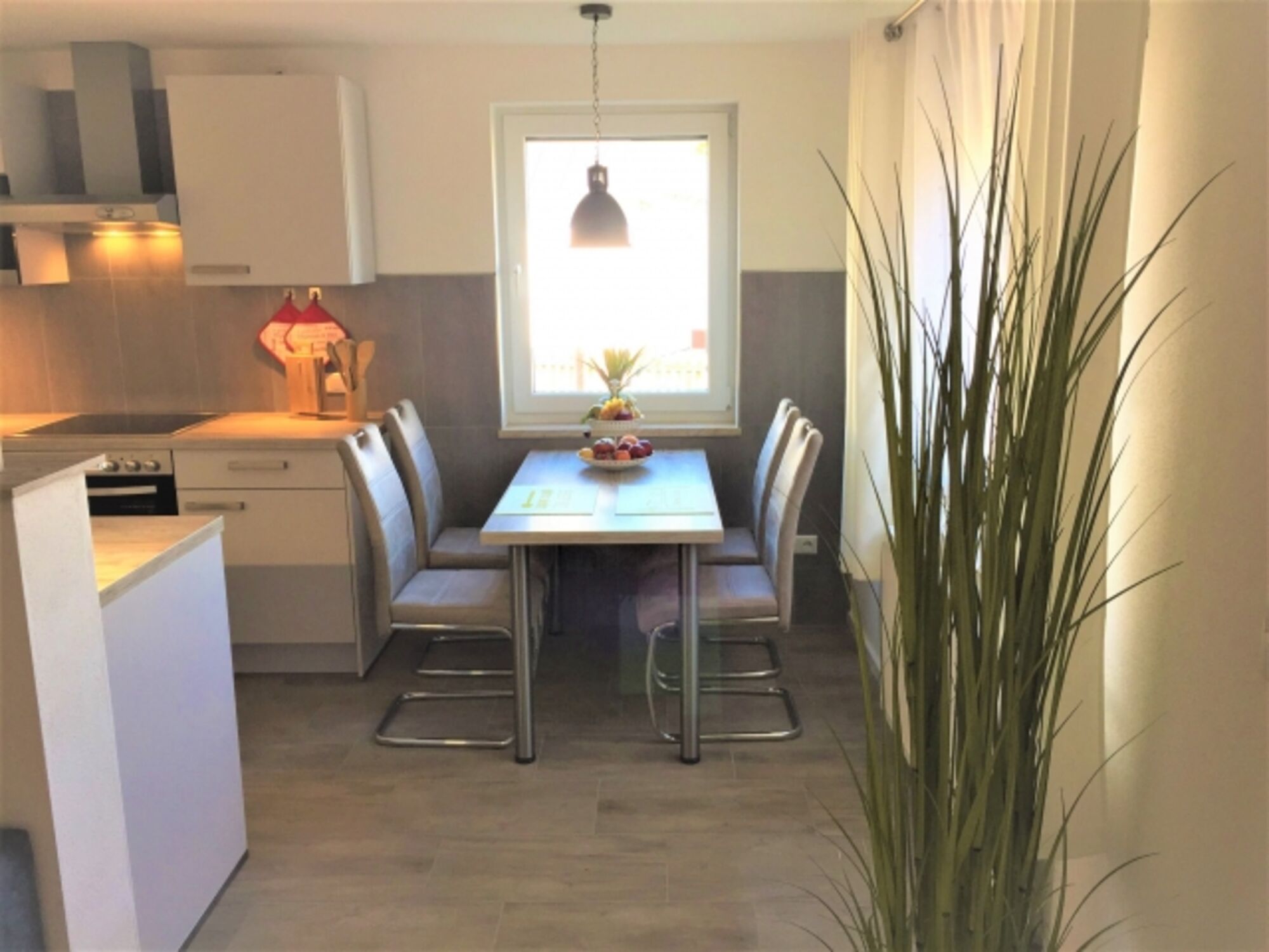 4-Platten Herd, Cerankochfeld, Dunstabzugshaube, Gefrierschrank, Filter-Kaffeemaschine und Senseo-Kaffeeautomat, Air-Fryer, Eierkocher, Mixer, Waffeleisen, Korkenzieher / Flaschenöffner, Gewürze (Salz, Pfeffer, Zucker), Öl / Essig, Geschirrhandtücher, Mülltüten, Essplatz in der Küche, TV in der Küche