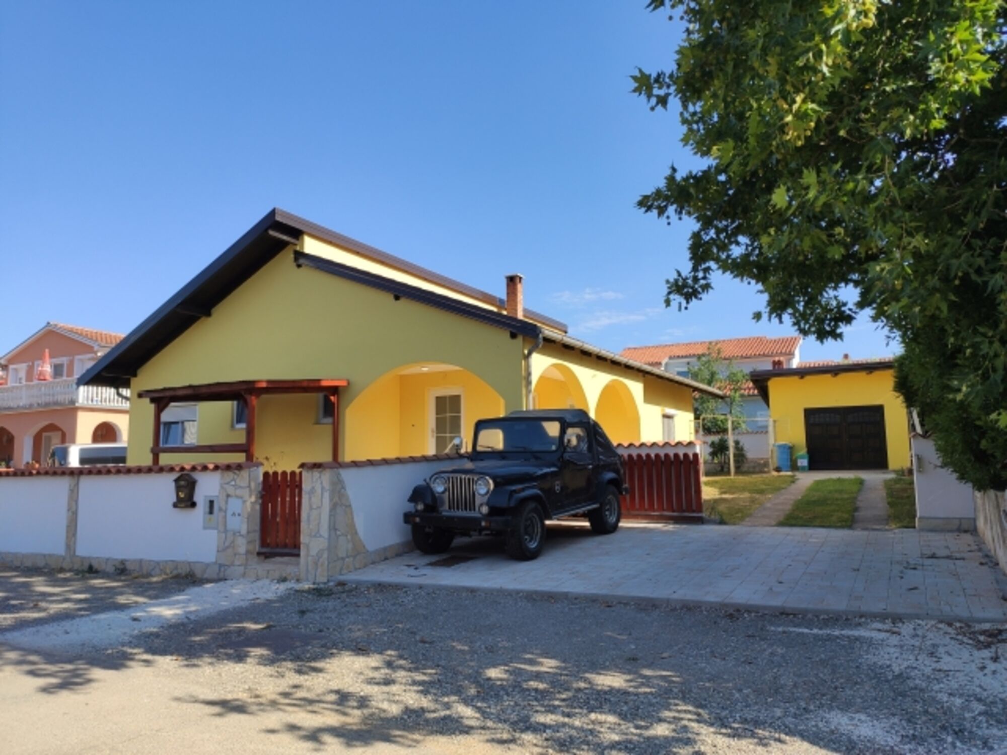 Das Ferienhaus liegt in einem beschaulichen Stadtteil von Pula. Das Haus ist ebenerdig begehbar und einstöckig. Der Wohnraum öffnet sich zur Rückseite des Gebäudes, hier befindet sich der Garten. Zur Straße hin liegt im vorderen Bereich des Hauses eine kleine Einliegerwohnung mit separatem Eingang.