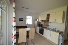 Die Einbauküche besticht durch ihre Großzügigkeit und Ausstattung. Neben den Elektrogeräten wie Kühlschrank mit Eisfach, Herd mit Cerankochfeld, Backofen, Edelstahlabzugshaube, Kaffeemaschine, Wasserkocher, Toaster und Eierkocher ... lässt auch das umfangreiche Zubehör wie Geschirr, Töpfe und Besteck keine Wünsche offen.