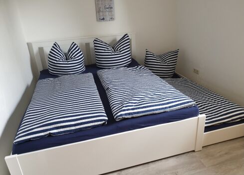 Max. 3 Personen - 4. Person auf Anfrage Doppelbett 1,60 x 2,00m, Einzelbett, Leselampe am Bett