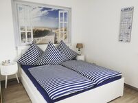 Im Schlafzimmer befindet sich ein 1,60m großes Doppelbett.