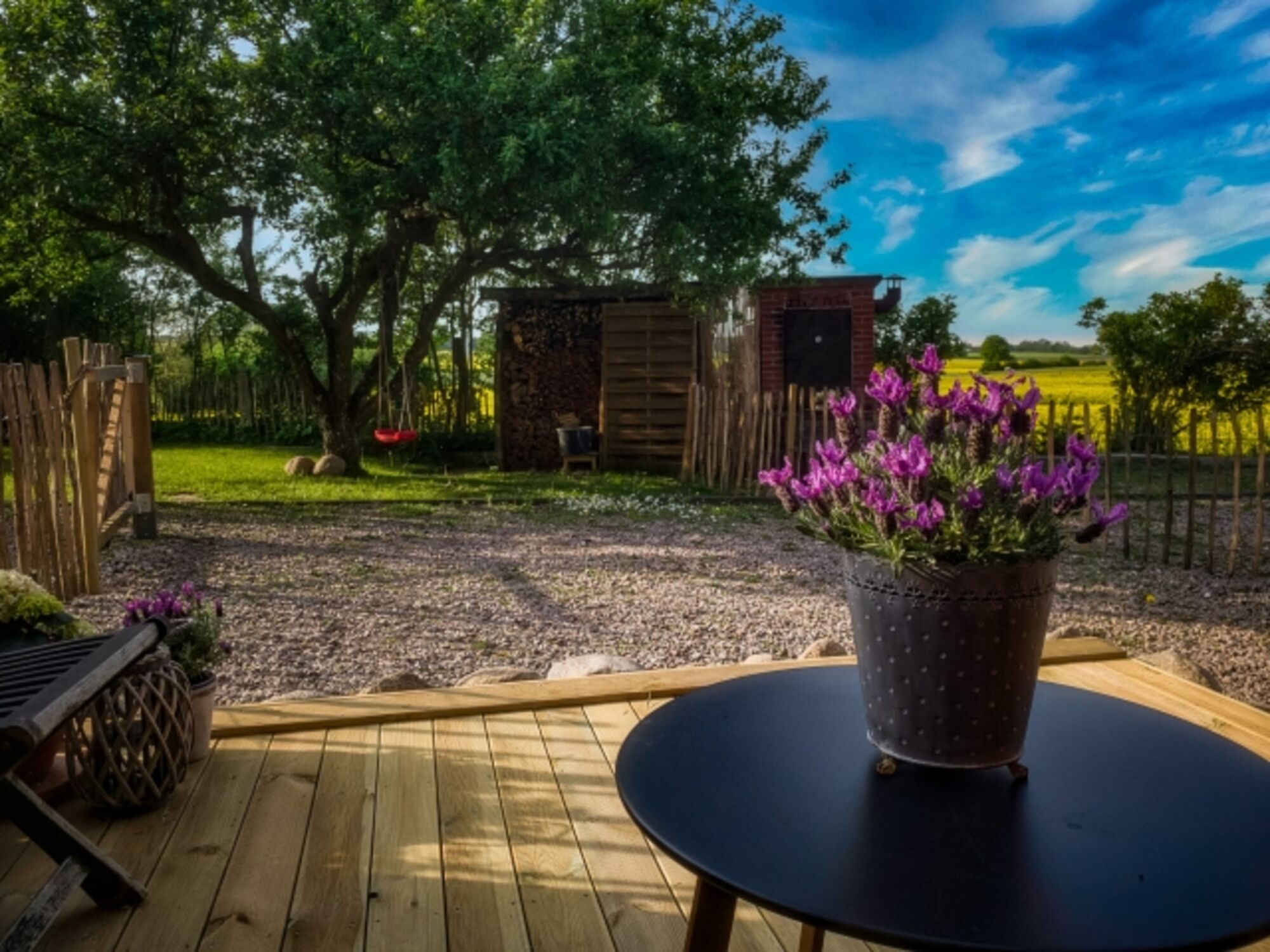 Sicher: Der angeschlossene Garten ist eingezäunt, sodass Sie die Tür entspannt offen lassen können.