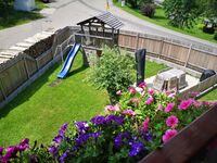 Gemütliche Ferienwohnung mit Balkon und Garten mit Zaun.
