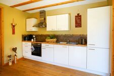 Cerankochfeld, Dunstabzugshaube, Gefrierschrank, Senseo-Kaffeeautomat, Mixer, Korkenzieher / Flaschenöffner, Gewürze (Salz, Pfeffer, Zucker), Öl / Essig, Geschirrhandtücher, Mülltüten