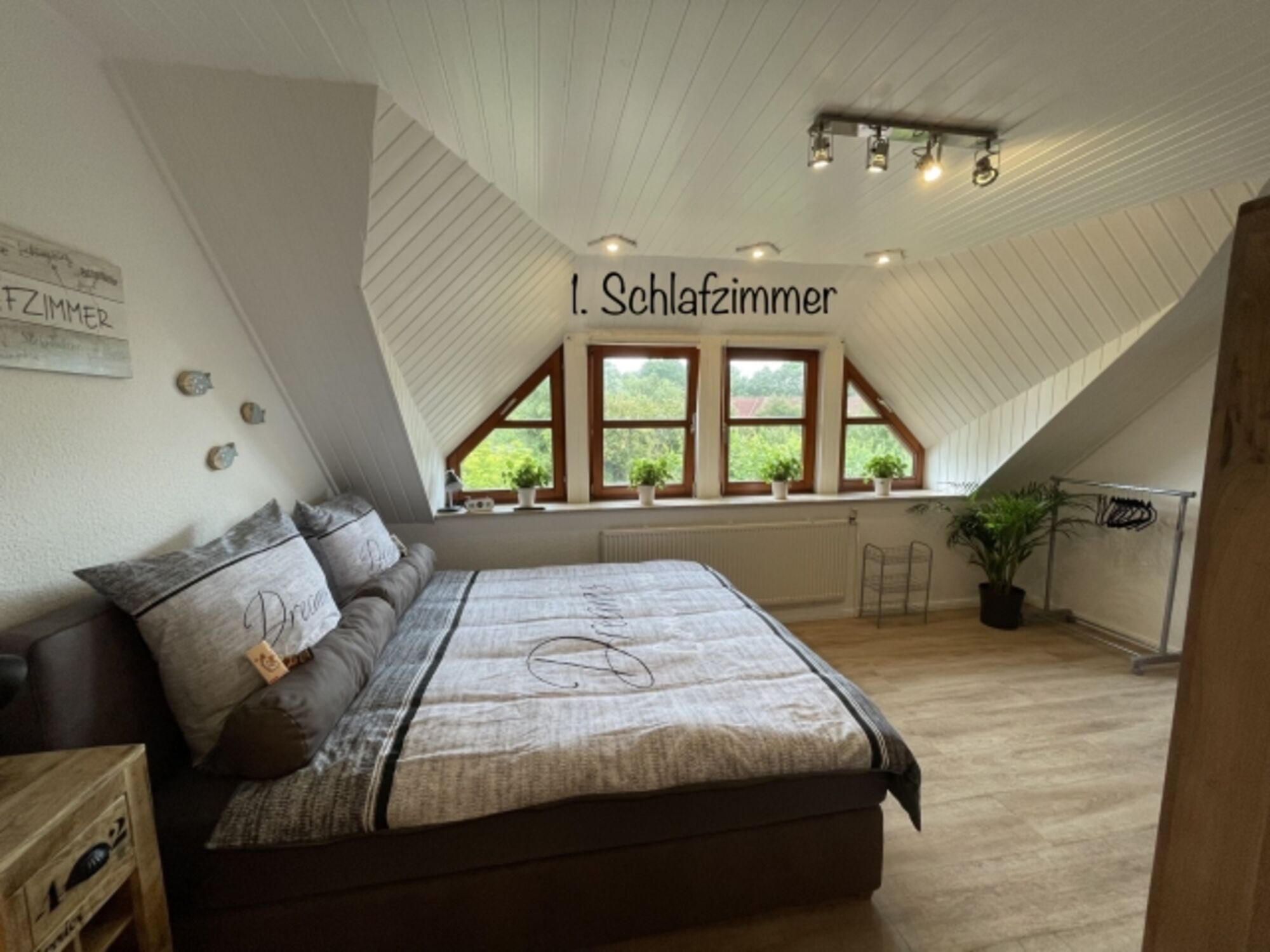 In einem , über eine Wendeltreppe begehbaren weiteren Dachgeschosszimmer, können nach vorheriger Absprache weitere zwei Personen schlafen .