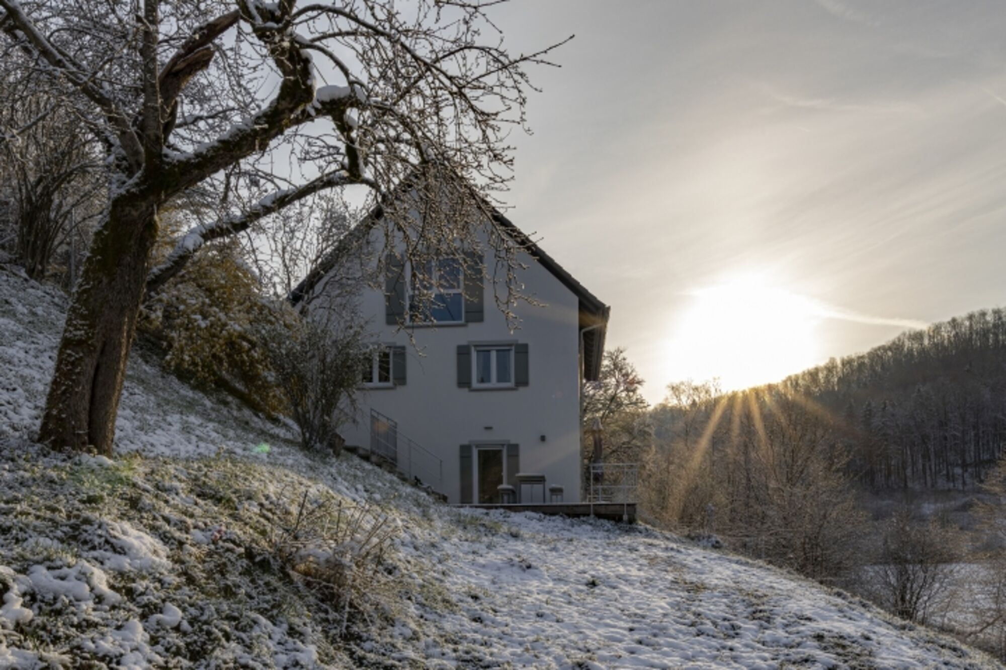 DesignWohnung in der Natur mit großem Garten und Wanderweg vor der Tür
