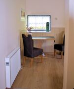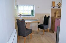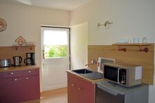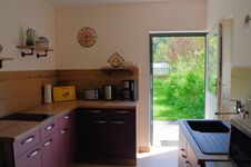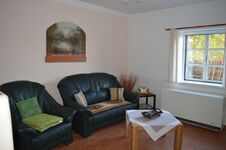 In unserer Ferienhaushälfte können bis zu 2 Personen übernachten. Dafür gibt es ein separates Schlafzimmer mit Doppelbett. Im Wohnzimmer finden Sie Sessel und ein 2-Sitzer-Sofa aus Leder sowie einen Flachbildschirm mit Sat-TV. Die separate Küche ist ausgestattet mit Kühlschrank mit ***-Gefrierfach, Toaster, Kaffeemaschine, Mikrowelle, Eierkocher, Wasserkocher, 2-Platten-Induktions-Ceranfeld. Kochtöpfe, Geschirr und Besteck sind natürlich auch vorhanden. Das Bad ist mit Dusche/WC - barrierefrei - ausgestattet.