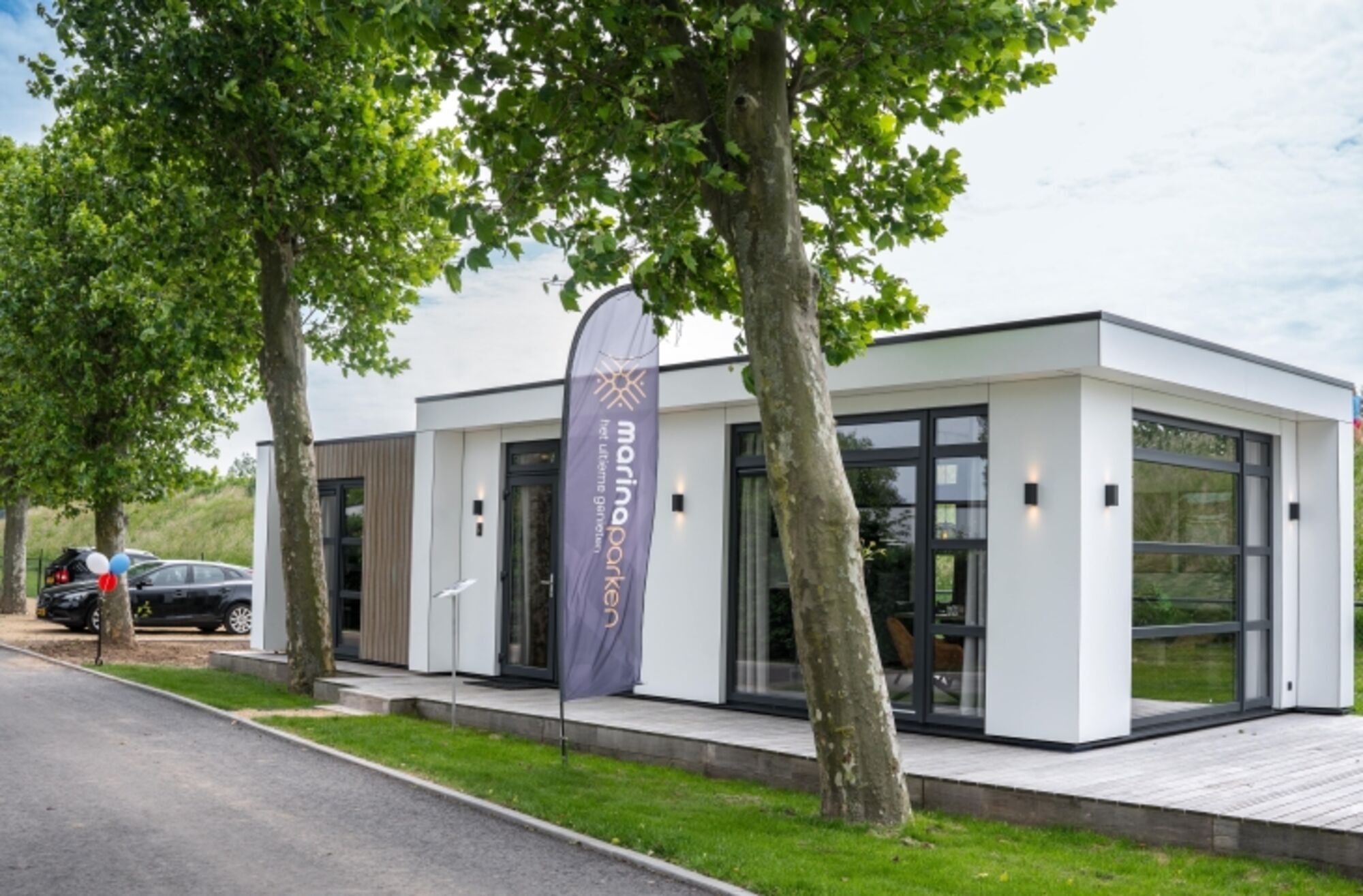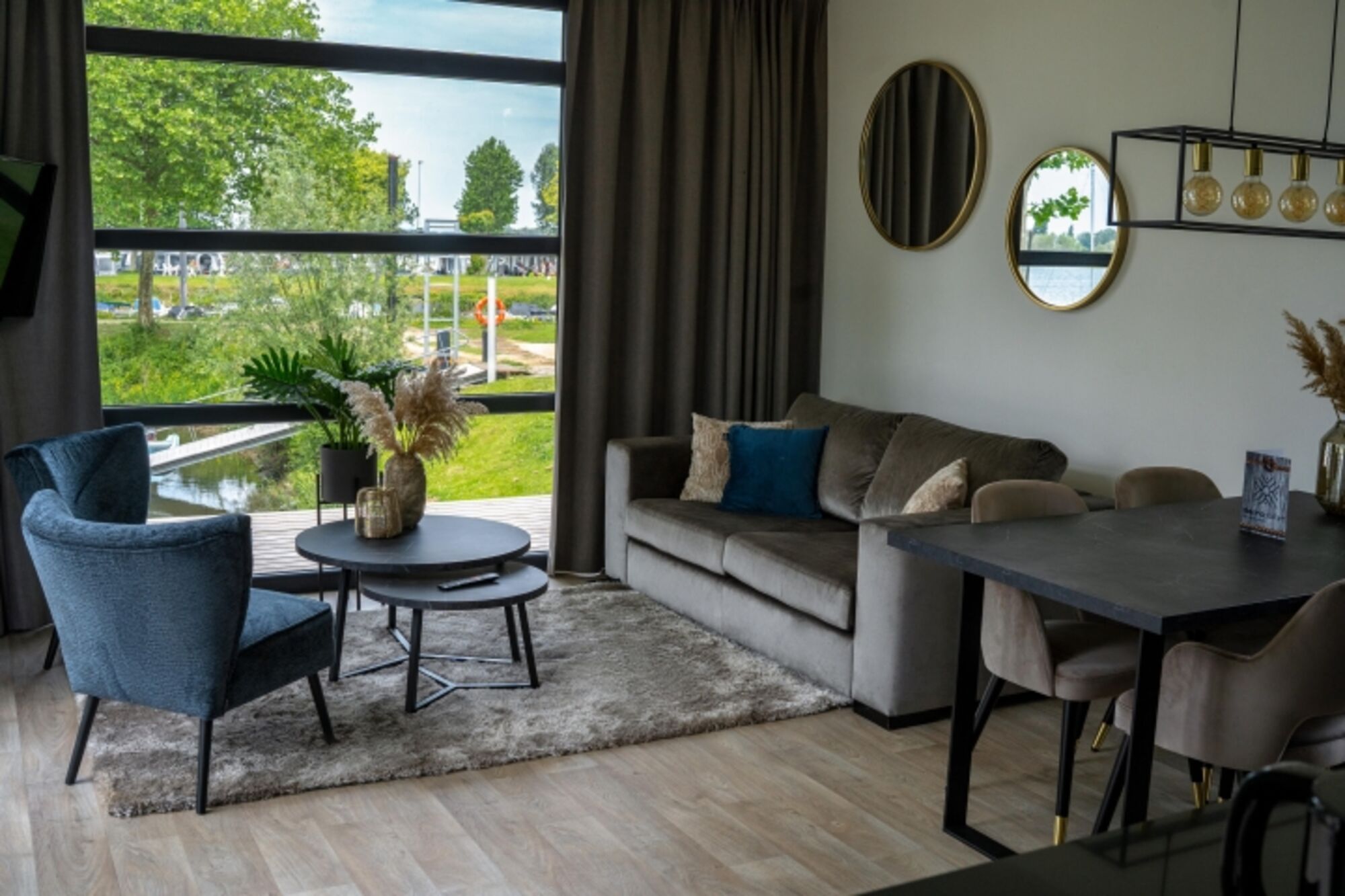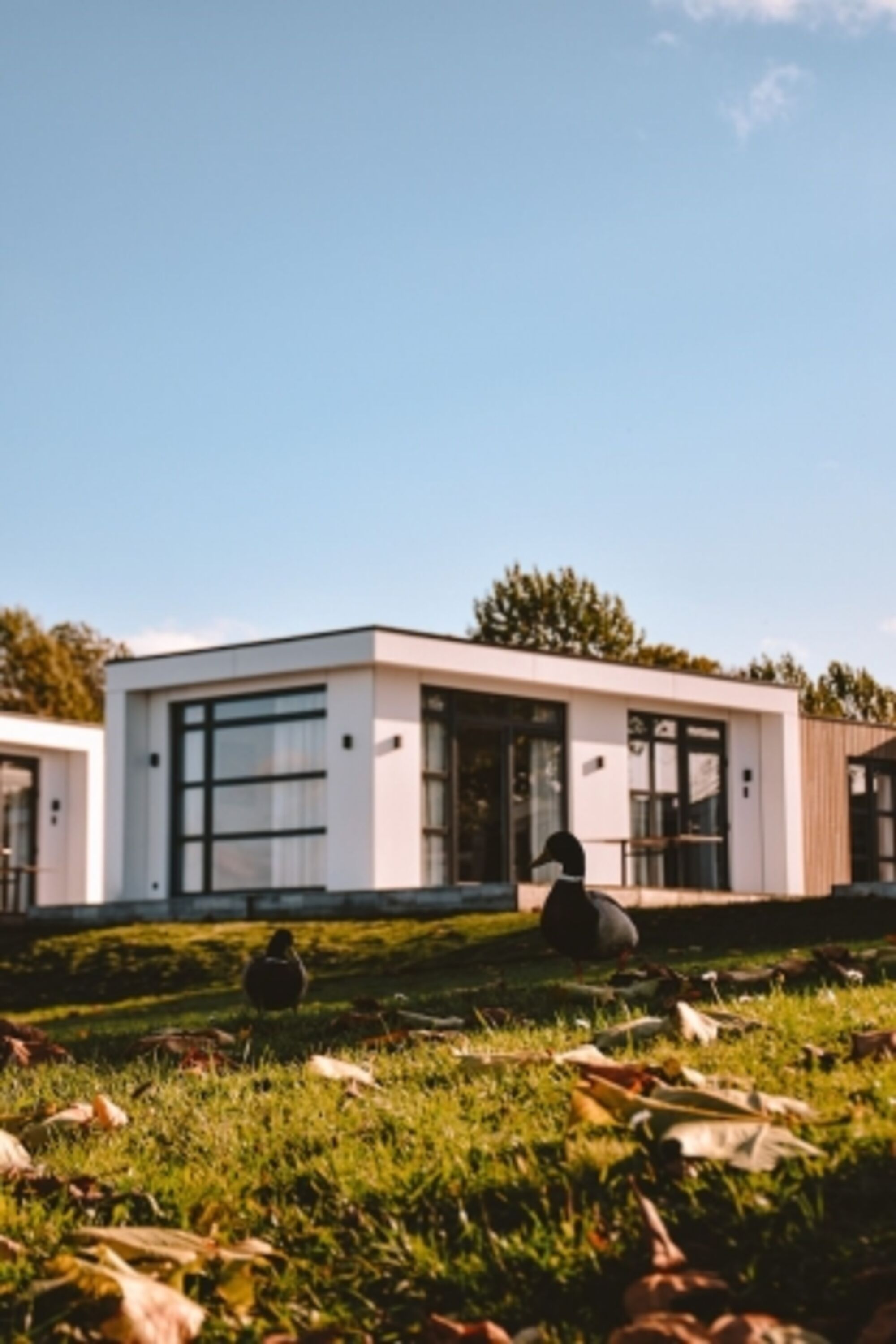 Alle unsere Villen haben zwei Schlafzimmer, beide mit 2 Einzel-Boxspringbetten und einem Flachbildfernseher in jedem Zimmer. Beide Schlafzimmer bieten reichlich Stauraum. Bei Ihrer Ankunft haben wir die Betten für Sie gemacht. Das luxuriöse, große Badezimmer hat ein Doppelwaschbecken, eine Regendusche und eine Toilette. Vom Wohnzimmer aus haben Sie Zugang zu der schön angelegten Hartholzterrasse und dem angrenzenden Rasen. Hier finden Sie einen bequemen Esstisch für 4 Personen und einen Sonnenschirm. Und wenn Sie ein eigenes Boot haben, können Sie bequem zum Hafen laufen und direkt auf den Niederrhein fahren. Unsere Villen sind Nichtraucherhäuser, ausgestattet mit WLAN und Abstellraum. Sie können ein Auto problemlos an der Unterkunft parken.