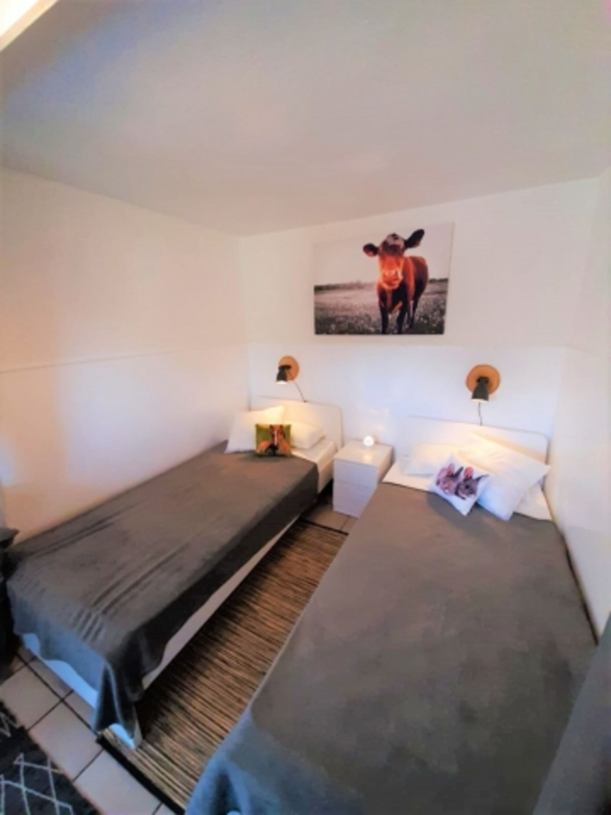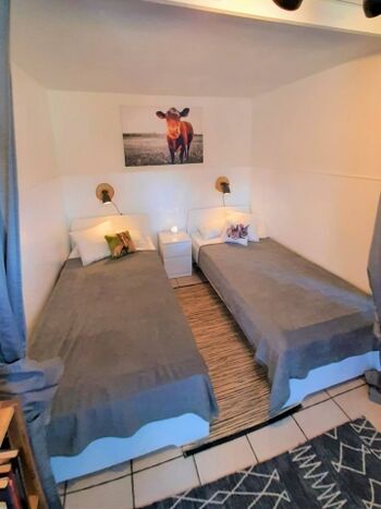 Hier bietet sich ein Familienurlaub an. In angrenzenden Haupthaus haben wir 2 weitere Ferienwohnungen im Obergeschoss, so dass Freunde oder Großeltern im gleichen Haus Urlaub machen. Zusammen, aber doch getrennt.