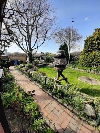 Dat Ferienhus Norddeich: EG-Wohnung mit Terrasse, Kamin und Garten
