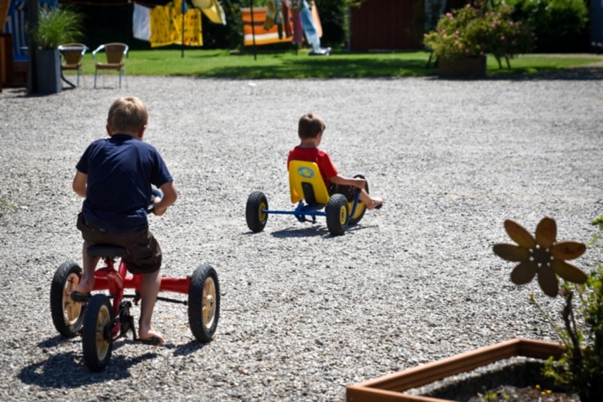 Auf dem Hof finden Sie eine großzügige Gartenanlage mit Trampolin, Kletterturm, Basketball- u. Fußballplatz . In der Scheune befindet sich ein Spielraum mit Billard, Tischtennis und Tischfußball, ebenfalls ein beheizbarer Aufenthaltsraum mit Büchern und Spielen. Auf dem Hof finden Sie kleine und große DinoCars, Bollerwagen, Laufräder für unsere kleinen Gäste und vieles mehr.