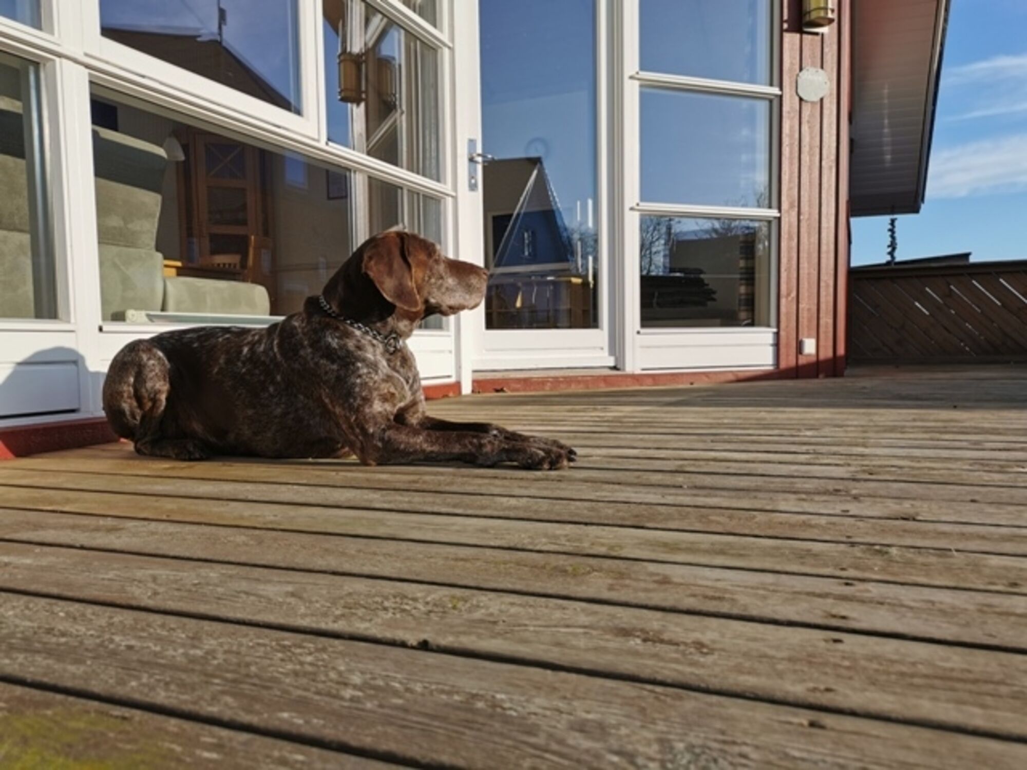 Auf der eigenen Südterrasse, mit Gartenmöbeln, Sonnenschirm und Strandkorb, einfach mal die Füße hochlegen und die Ruhe in Ostseenähe genießen. Sie blicken von der Terrasse aus auf den Deich und die Pferde.
