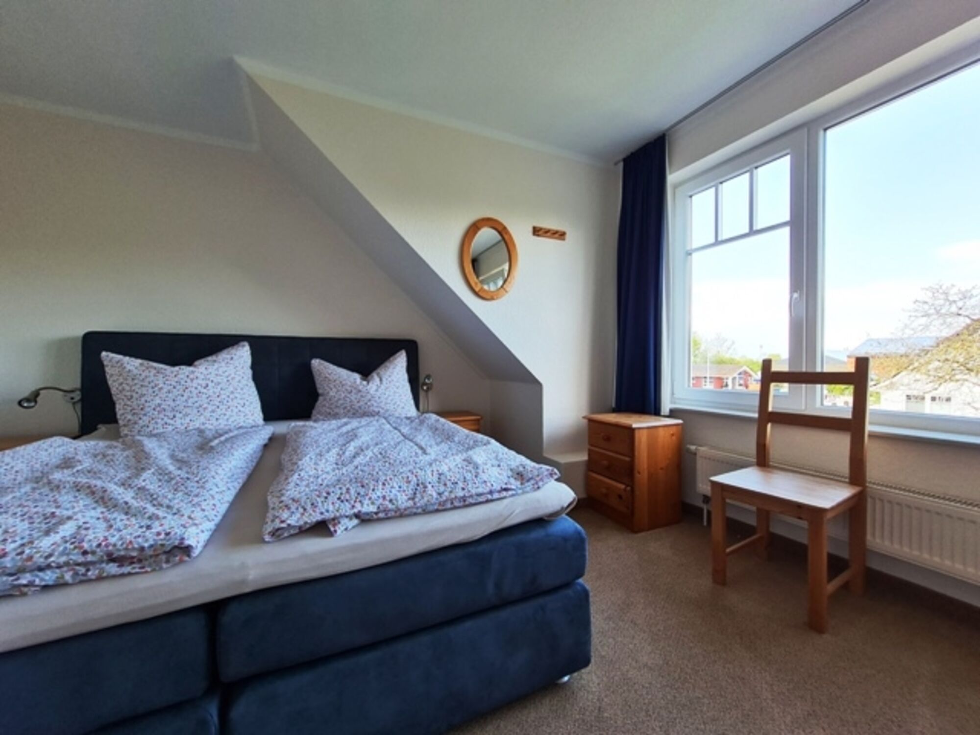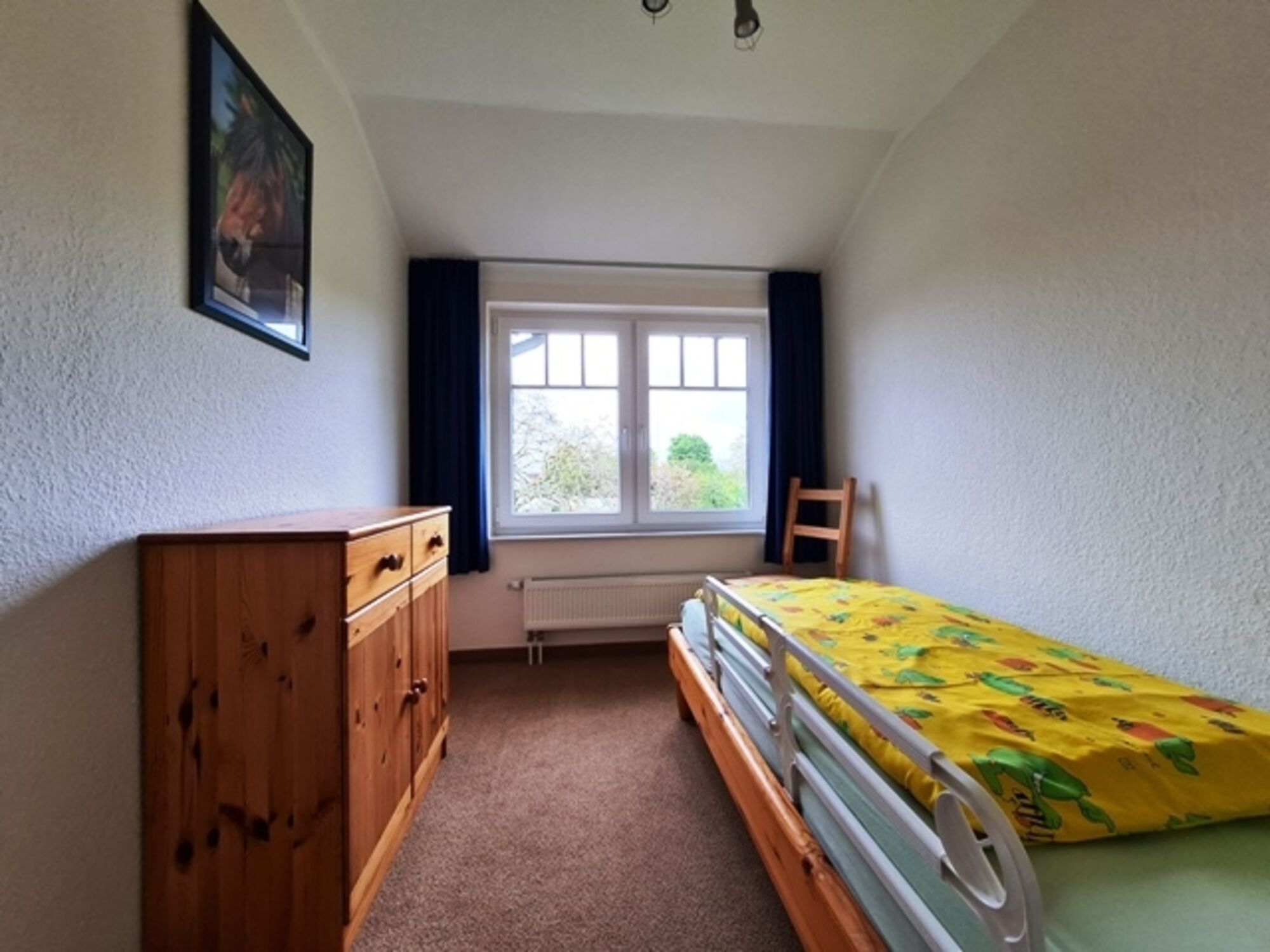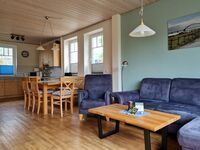 Ihre komfortabel eingerichtete Doppelhaushälfte Kornblume bietet auf zwei Etagen Platz für bis zu fünf Personen. Im Erdgeschoss finden Sie einen Wohnraum mit TV, Kamin und Essbereich, eine offene, voll ausgestattete Küche, sowie ein extra WC. Im Obergeschoss drei Schlafräume und ein Badezimmer. Das Elternschlafzimmer hat ein Boxspringbett, ein Kinderzimmer ist mit zwei Einzelbetten, das Zweite mit einem Einzelbett ausgestattet. Im Badezimmer mit Fenster, Dusche und WC befindet sich eine Handtuchheizung.